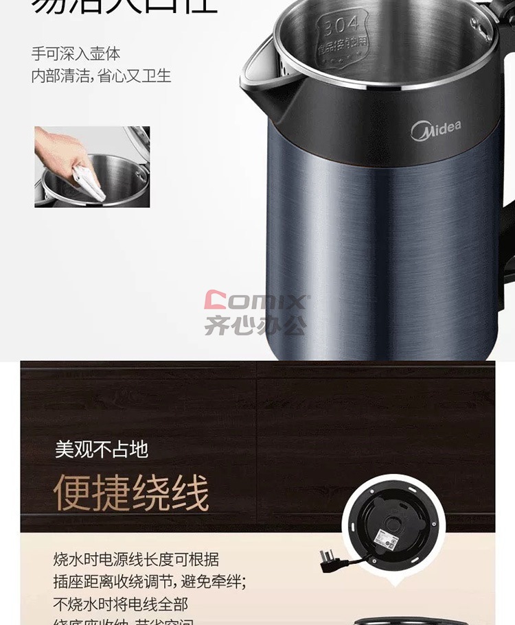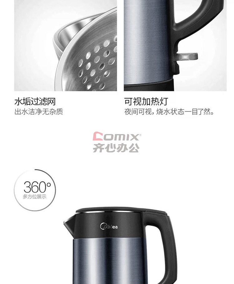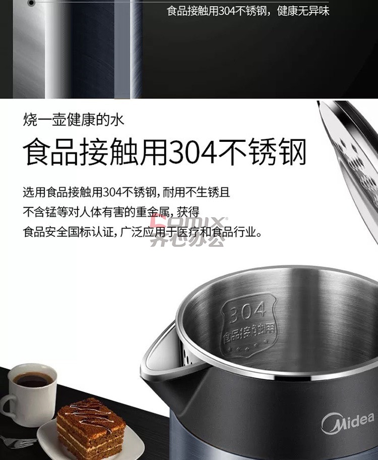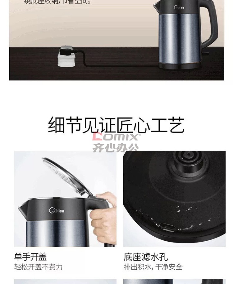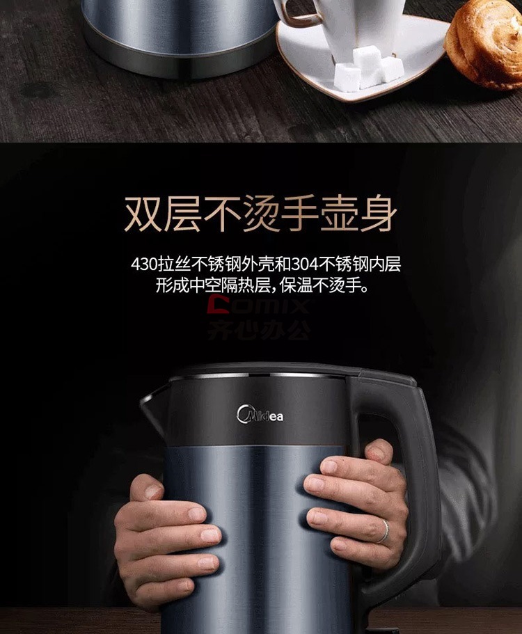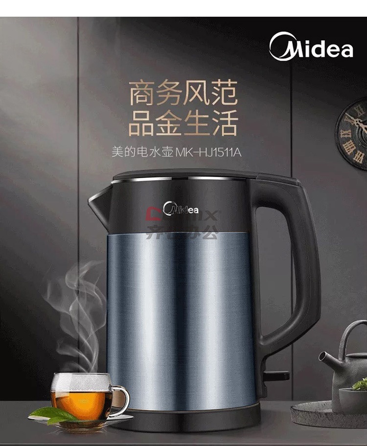 商品名称:美的 HJ1511A 1.5L 304不锈钢双层无缝内胆进口温控电热水壶 黑色(单位:个)