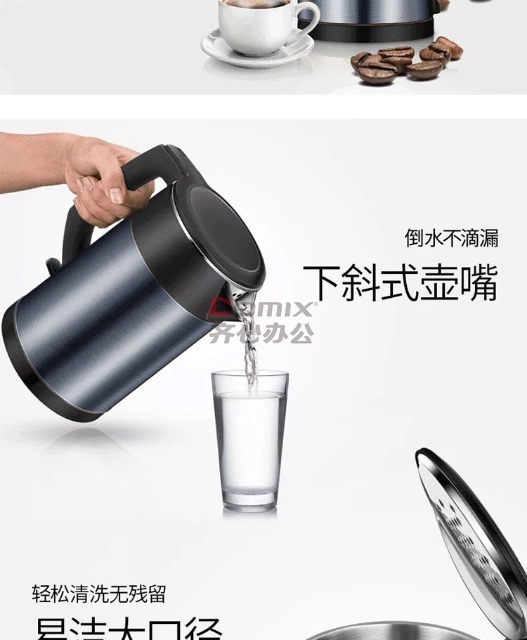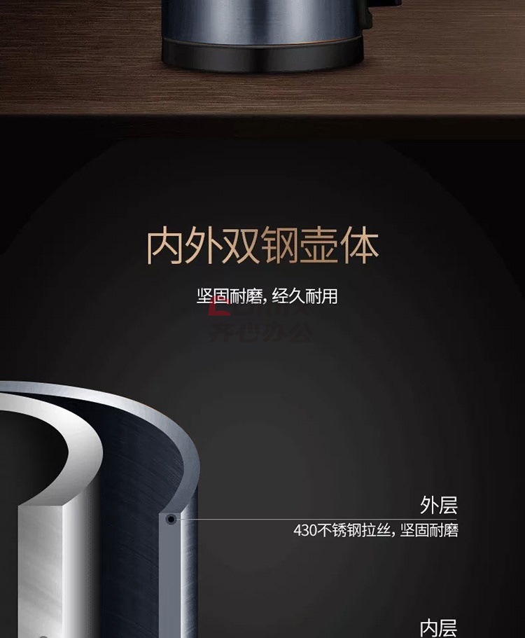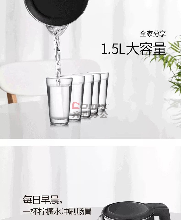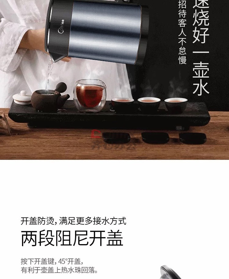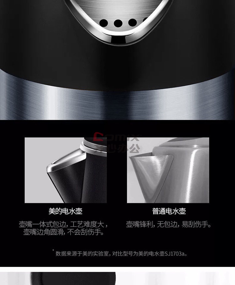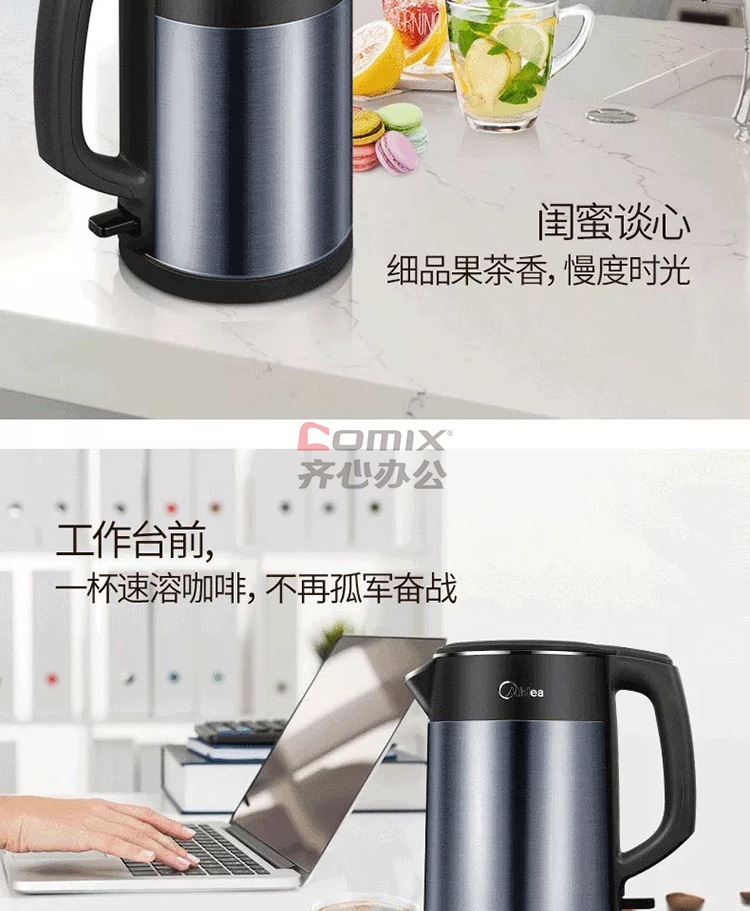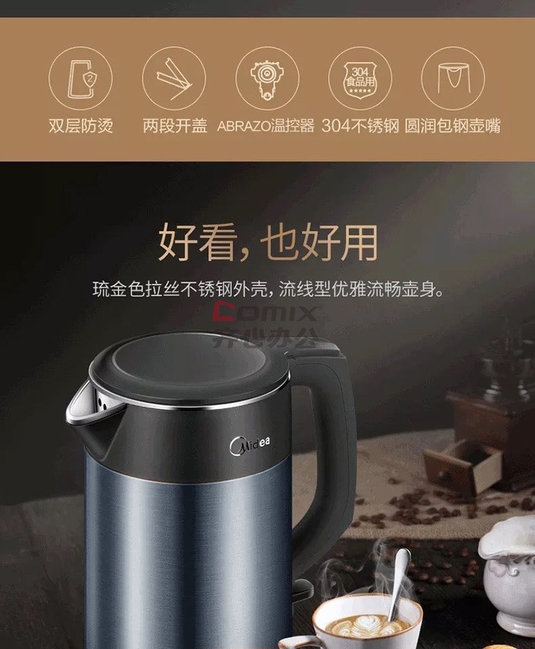 商品名称:美的 HJ1511A 1.5L 304不锈钢双层无缝内胆进口温控电热水壶 黑色(单位:个)