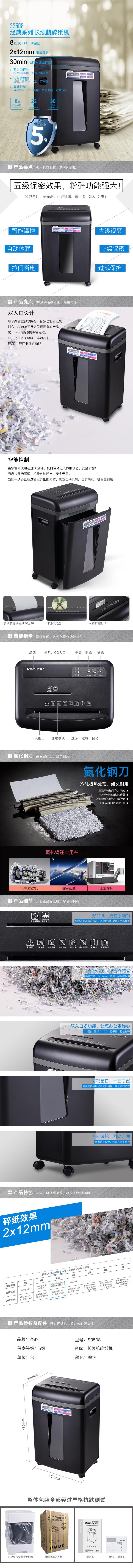 商品名称:齐心 S3508 长续航碎纸机/光盘粉碎机 黑色 单位:台
