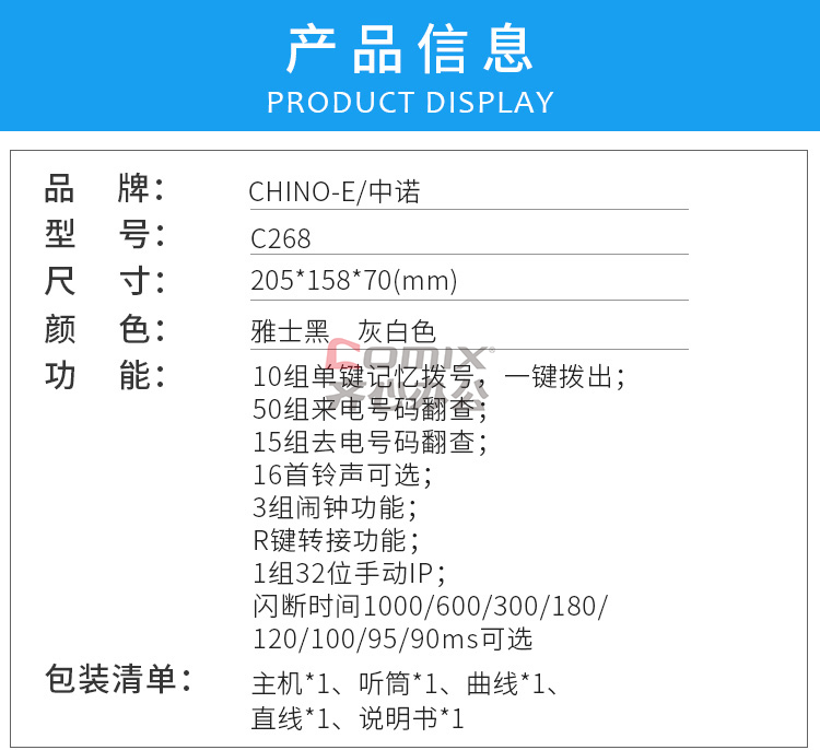商品名称:中诺 C268 商务办公电话机 黑色(单位:台)