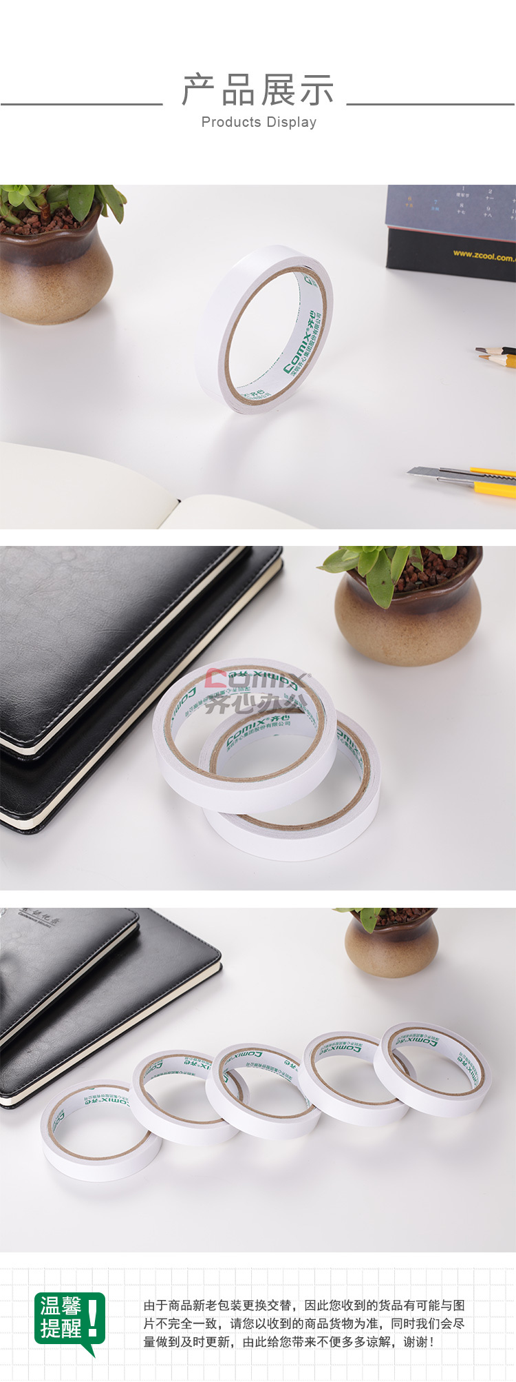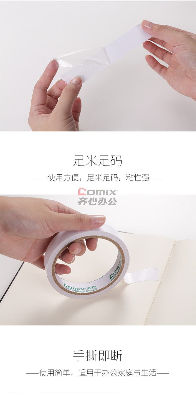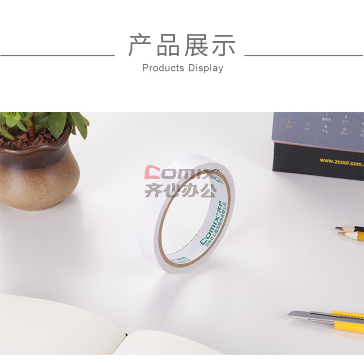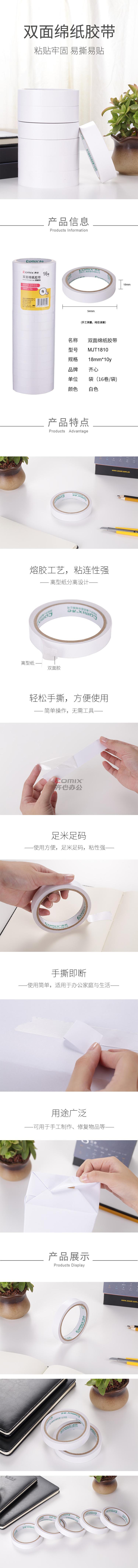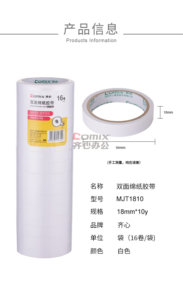 商品名称:齐心 MJT1810 双面棉纸胶带 18mm*10y 白色 16卷/筒 单位:筒