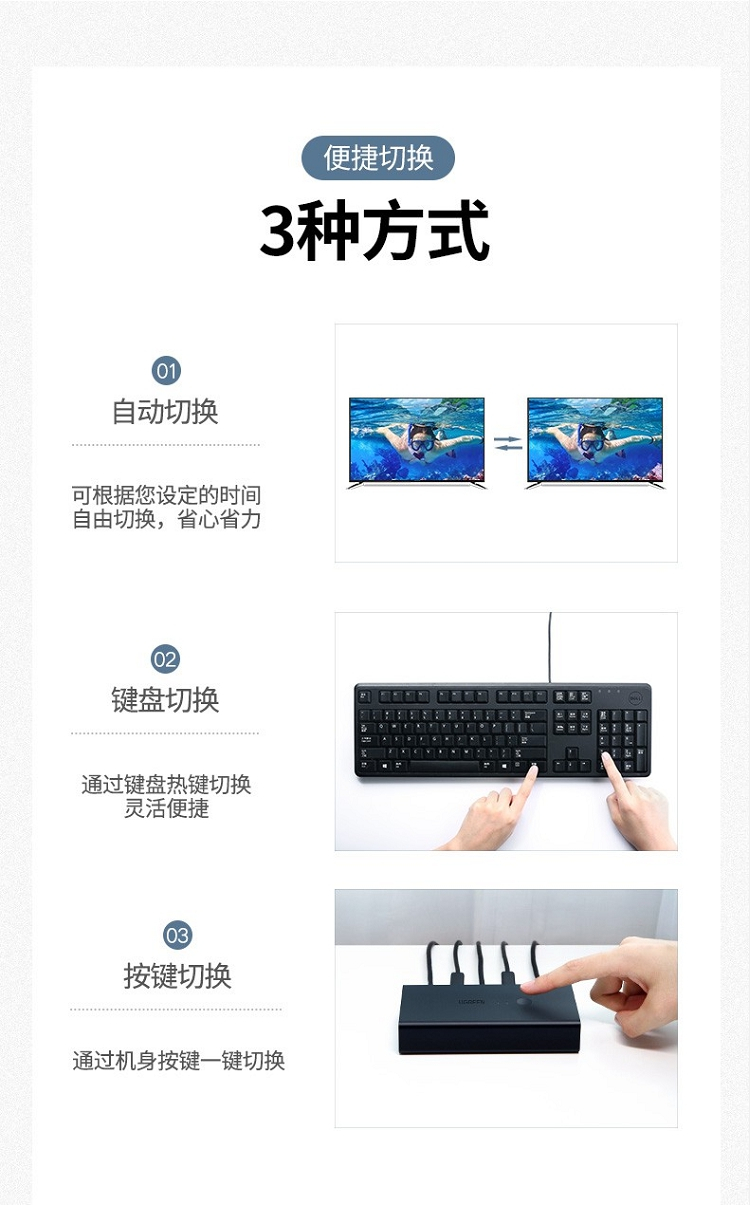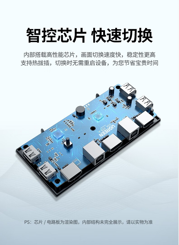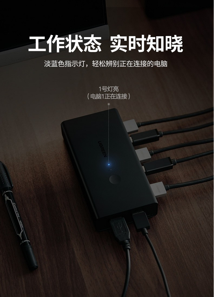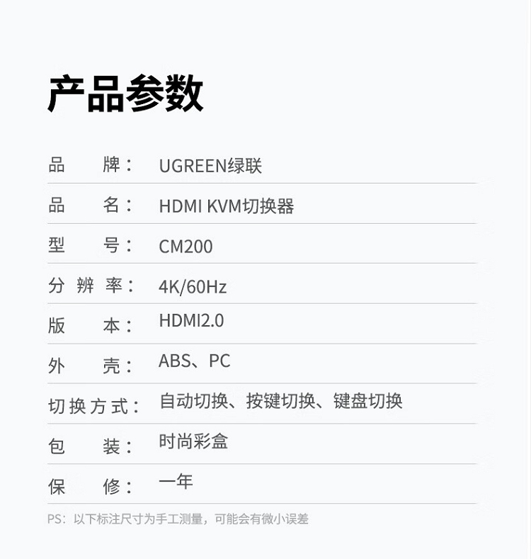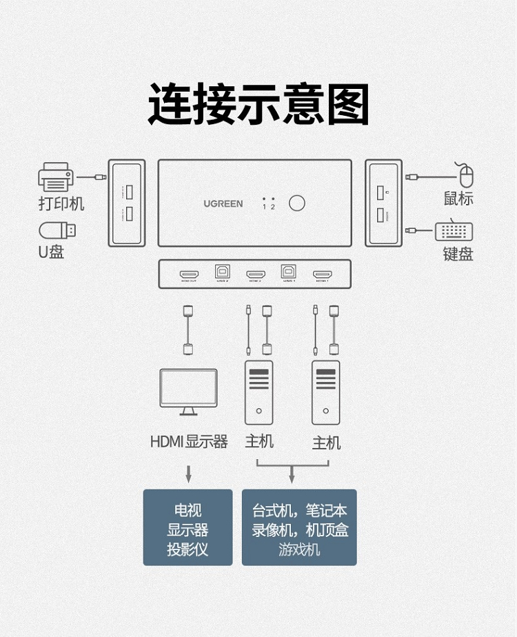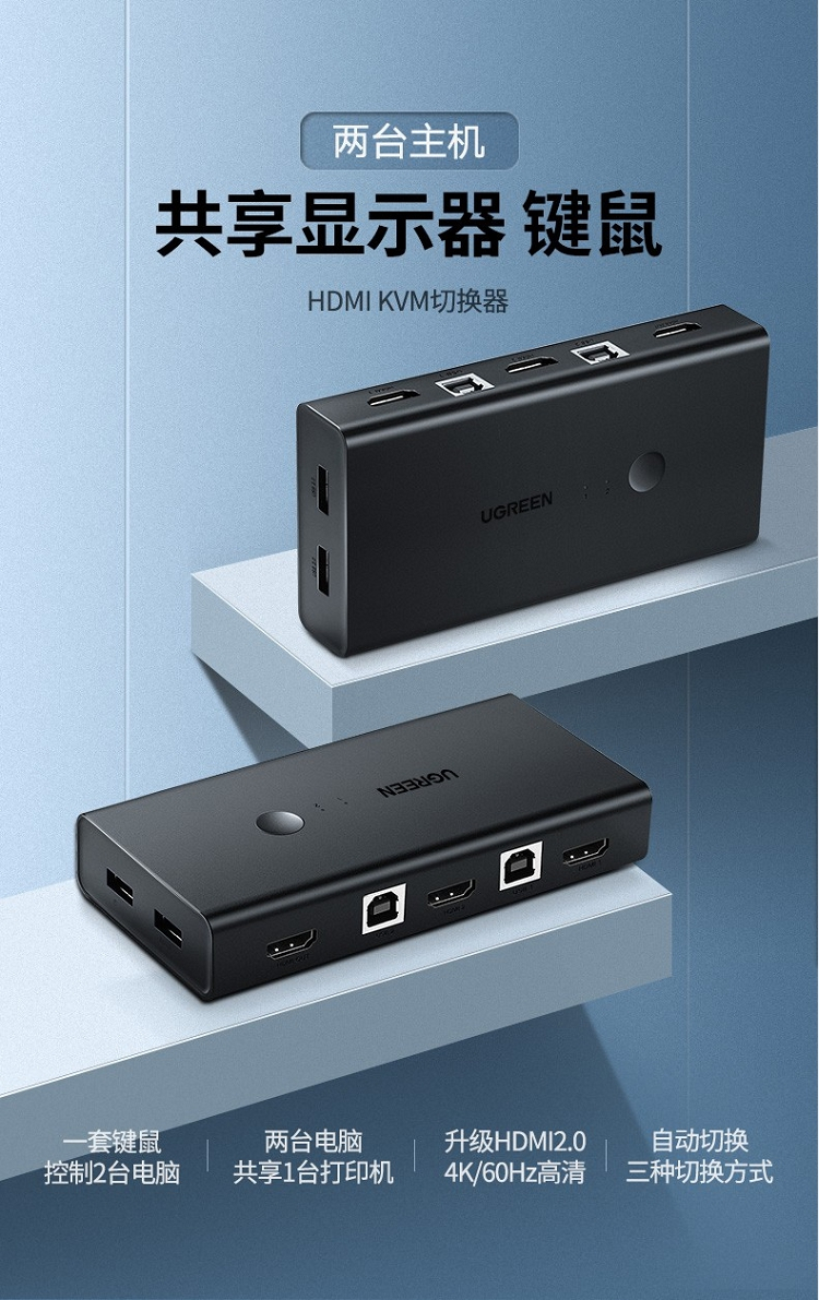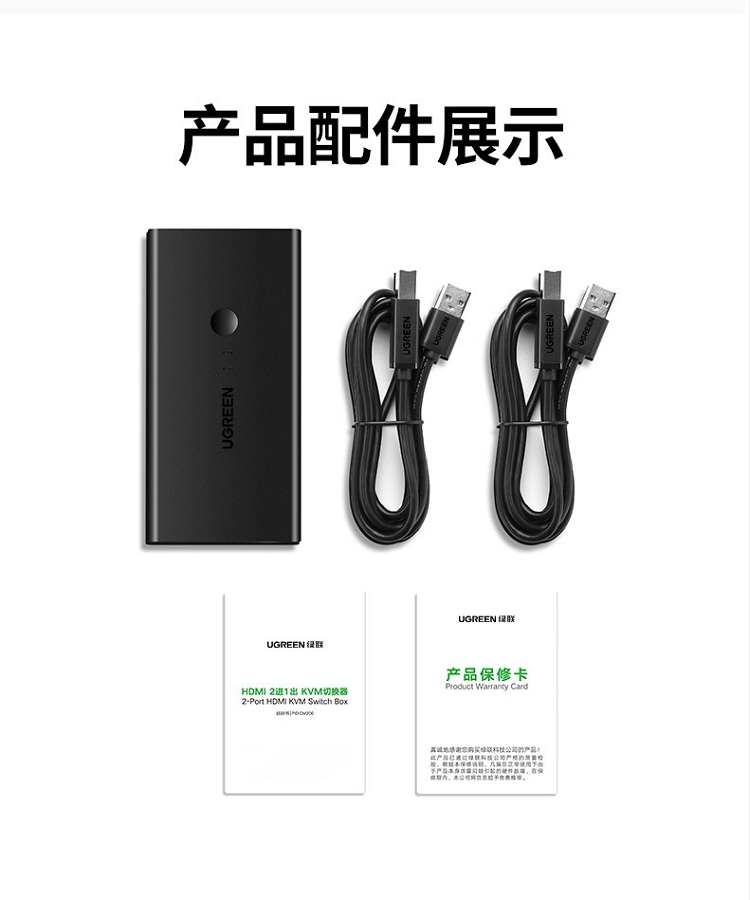 商品名称:绿联 50744 2进1出 KVM/HDMI USB打印机共享器 黑色(单位:个)