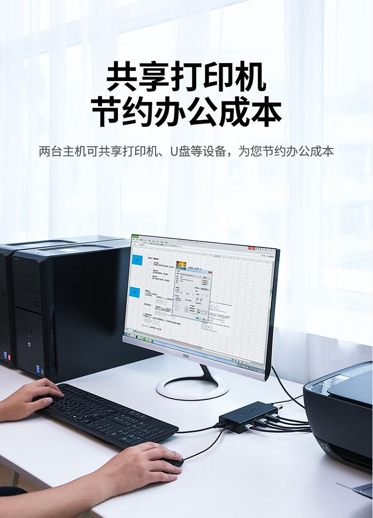 绿联 50744 2进1出 KVM/HDMI USB打印机共享器 黑色(单位:个)