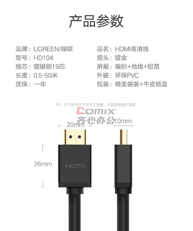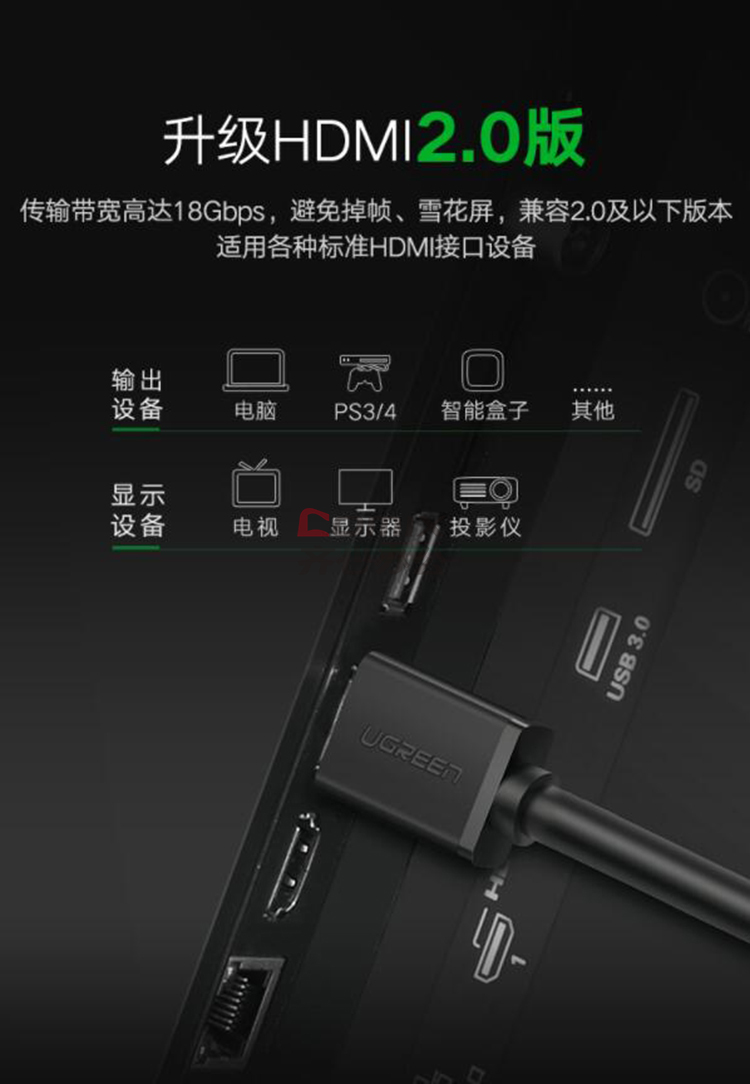 商品名称:绿联 30115 0.5M HDMI高清数据线 黑色(单位:条)