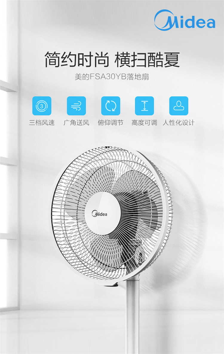 商品名称:美的 FSA30YB 三档摇头落地扇(单位:台)