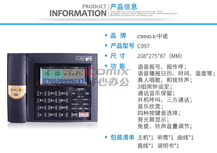 商品名称:中诺 C097 真皮座式电话机 黑色(单位:台)