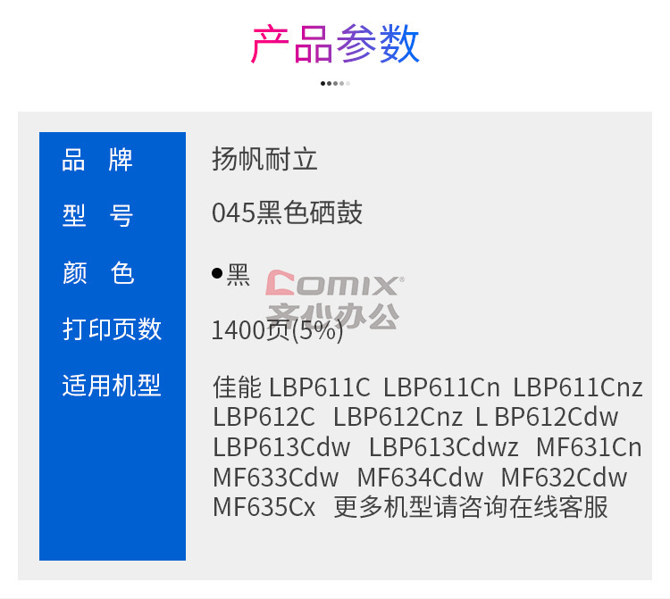 - 商品名称:扬帆耐立 YFHC-045-B 硒鼓 适用佳能LBP611/Cn/Cnz,LBP612C 商专版 黑色(单位:个)