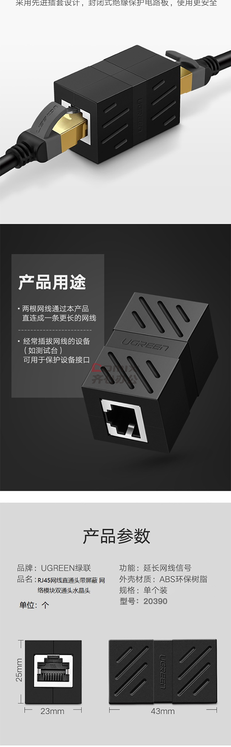 商品名称:绿联 20390 网络模块双通水晶头(单位:个)