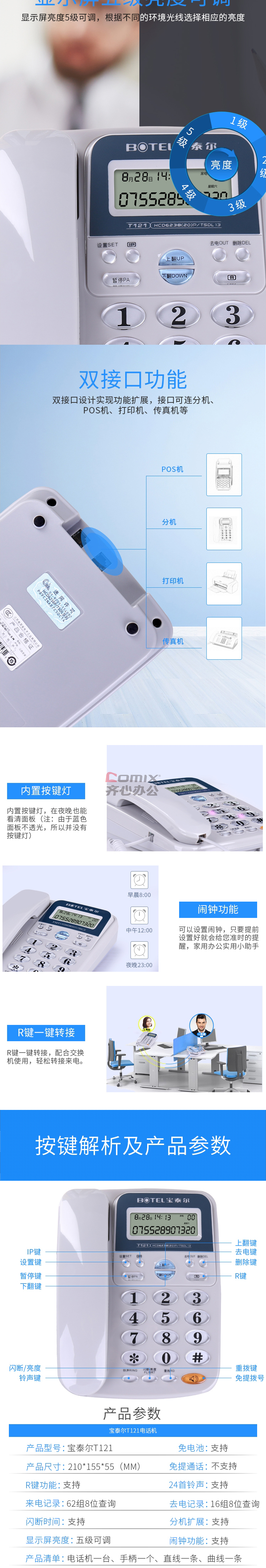 商品名称:宝泰尔 T121 电话机 灰色 (单位:台)