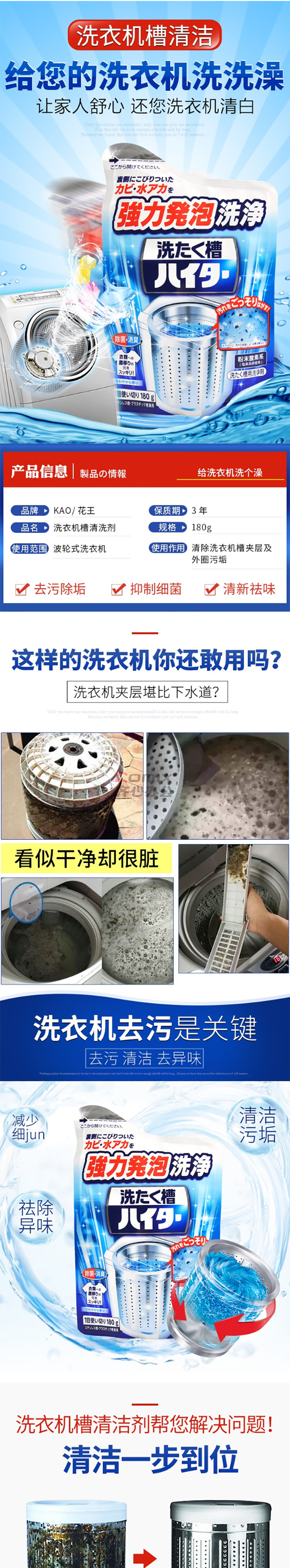 商品名称:花王(KAO) 180g 洗衣机槽清洗剂 1.00 瓶/袋 (计价单位:袋)
