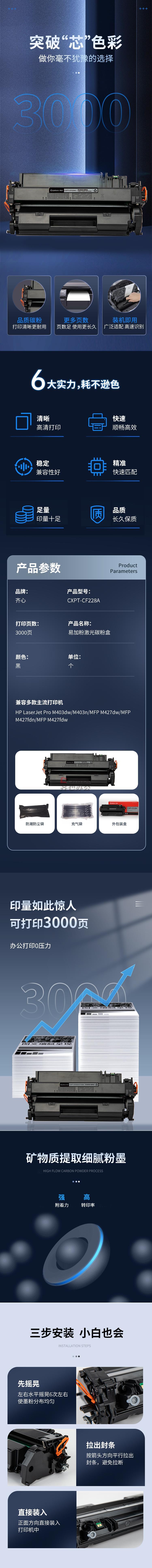 齐心 CXPT-CF228A 易加粉激光碳粉盒/硒鼓 1400页 黑色 单位:个 适用:HP LaserJet Pro M403dw/M403n/MFP M427dw/MFP M427fdn/MFP M427fdw