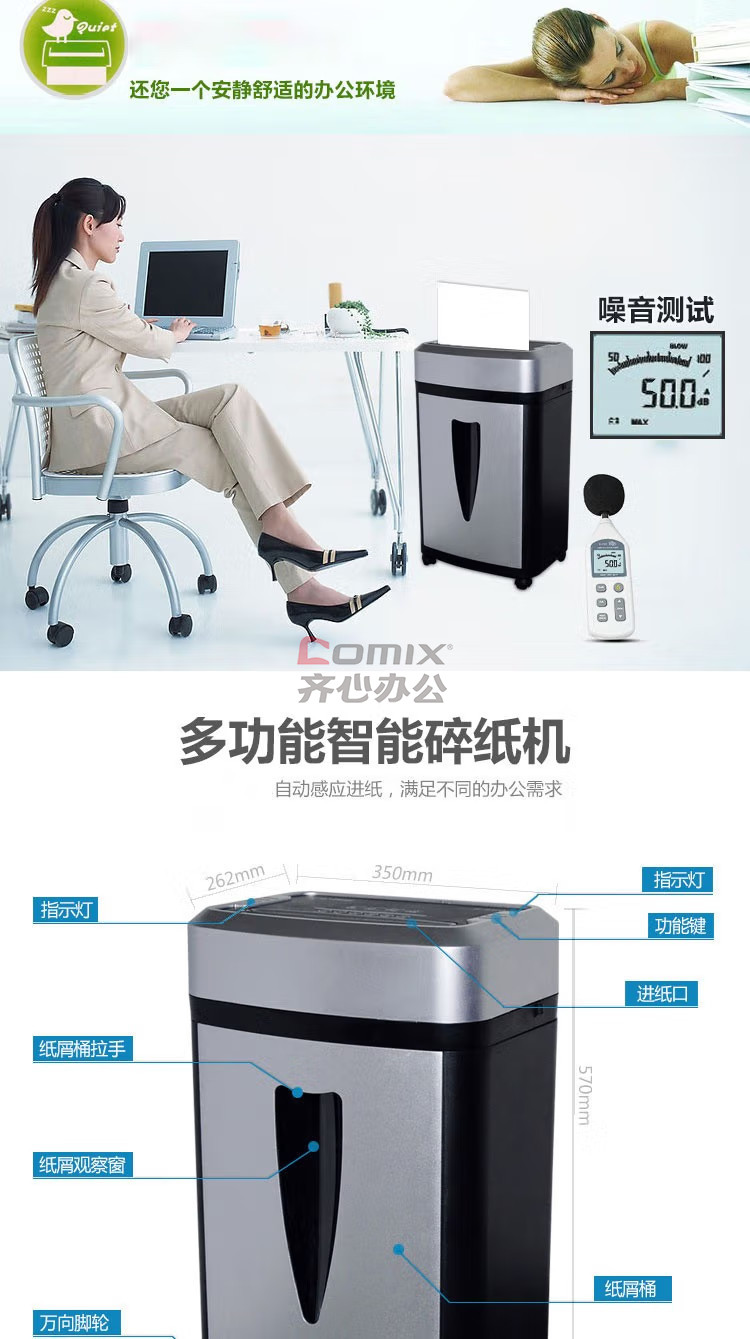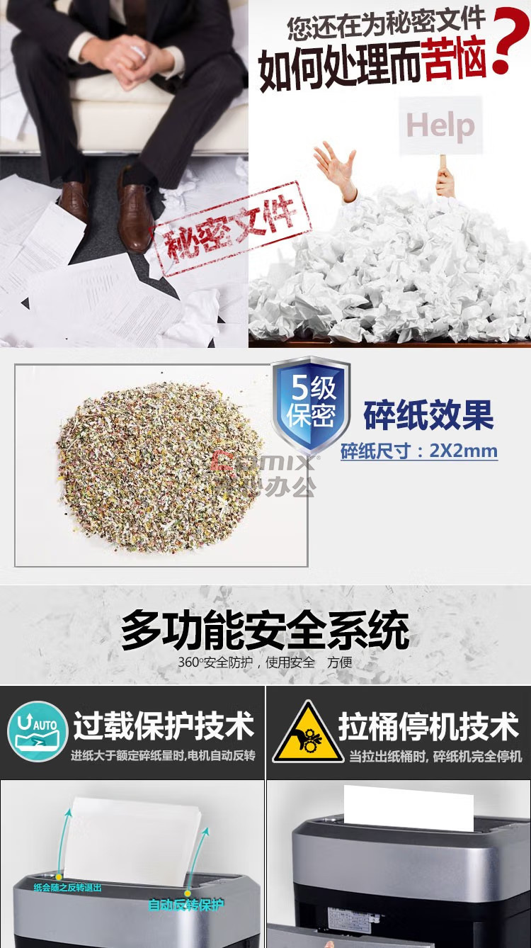 商品名称:科密 S-550 碎纸机 5级保密办公全自动碎纸机 灰黑色 单位:台