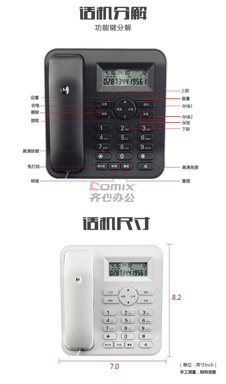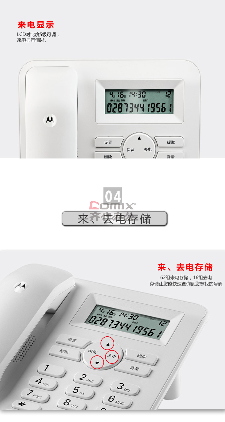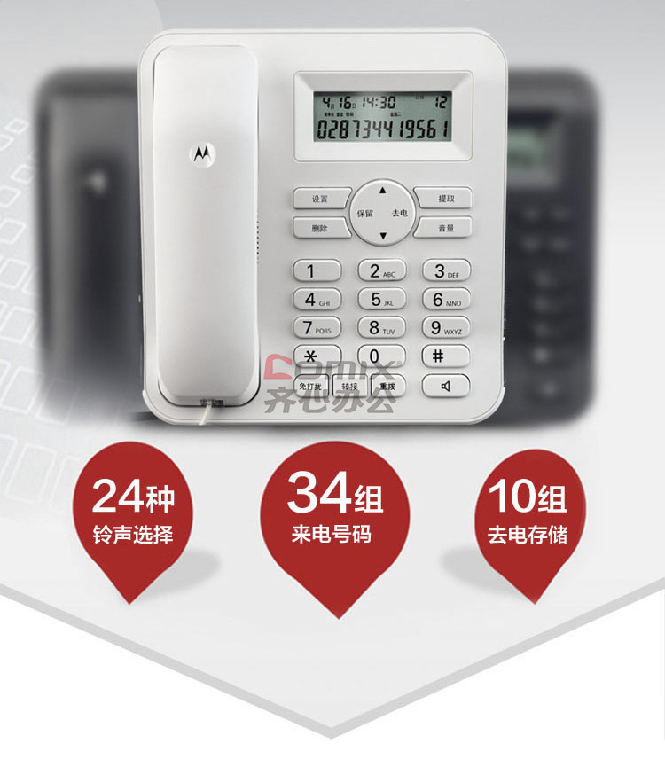 商品名称:摩托罗拉(Motorola) CT410C 白色有线座机电话机 白色 (单位:台)