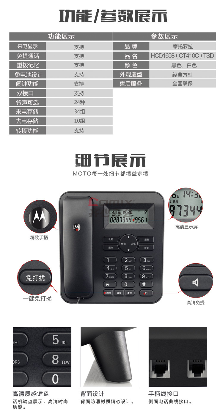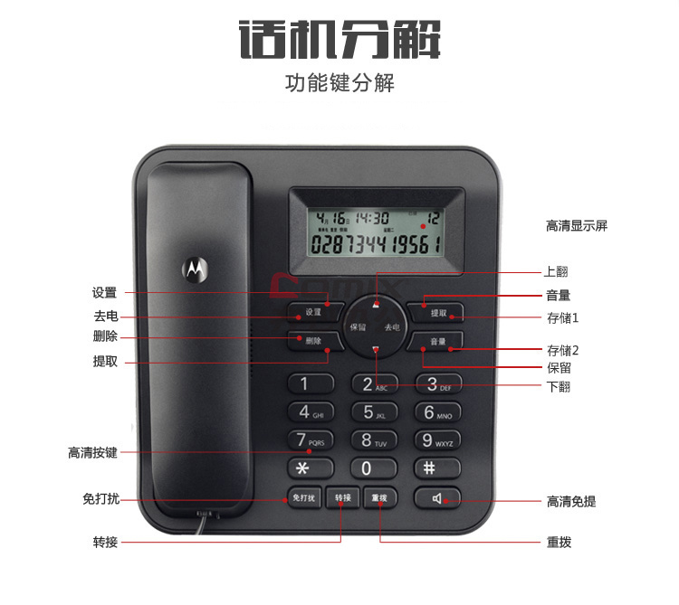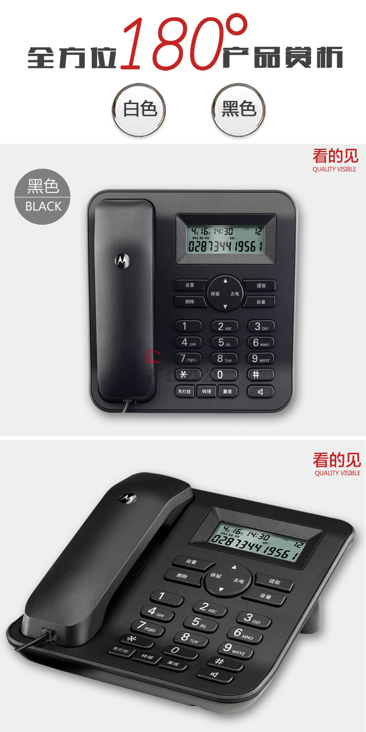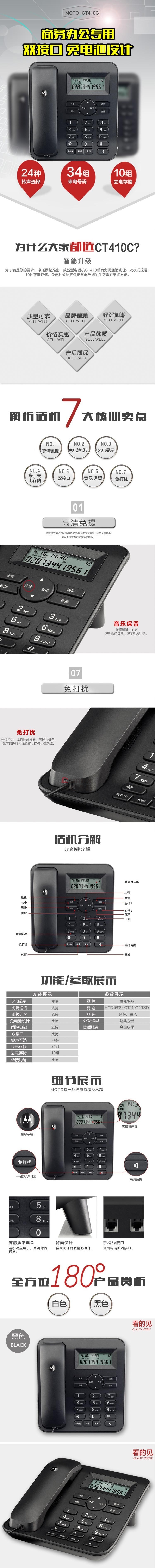 商品名称:摩托罗拉(Motorola) CT410C 黑色有线座机电话机 黑色 单位:台