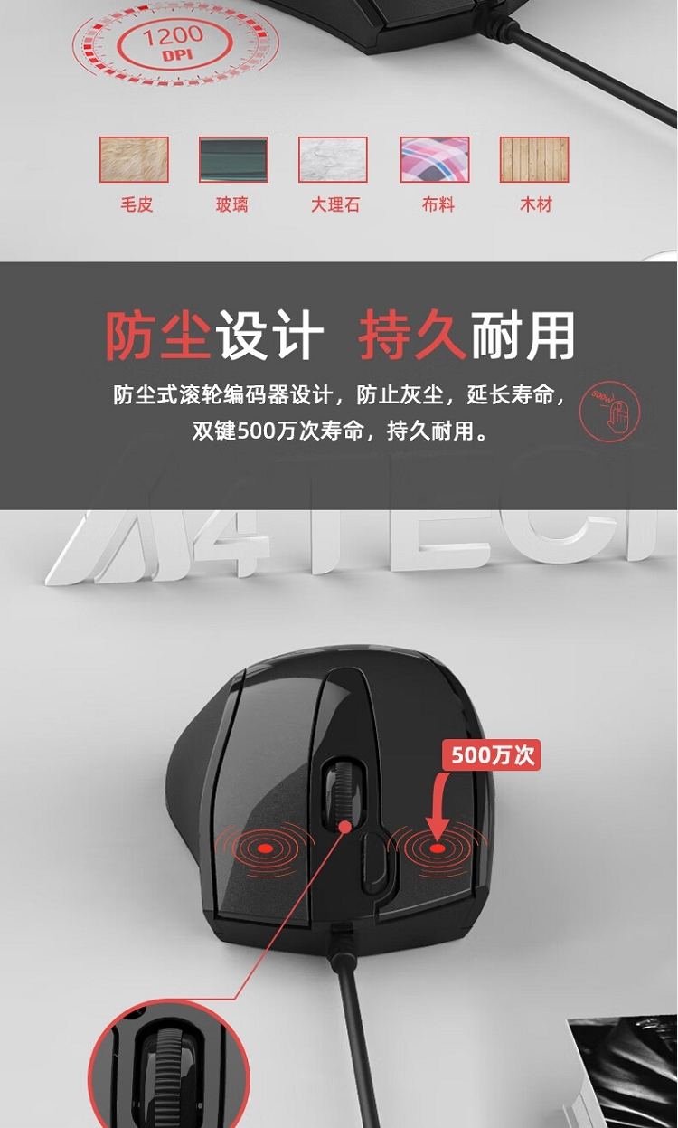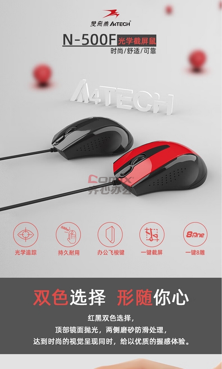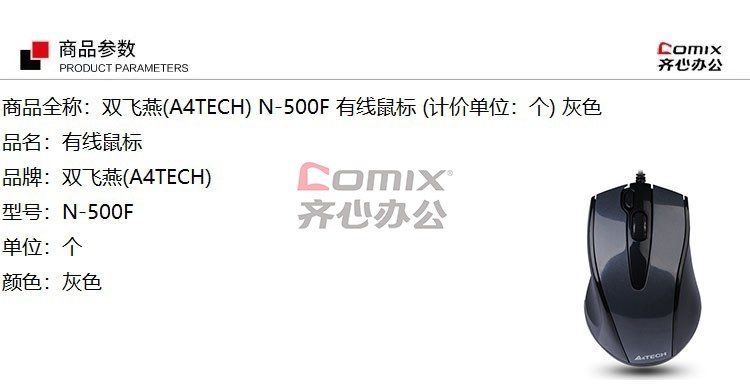 商品名称:双飞燕(A4TECH) N-500F USB有线鼠标(计价单位:个)灰色