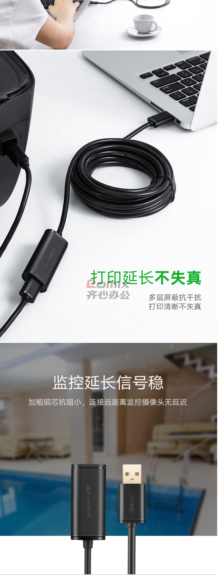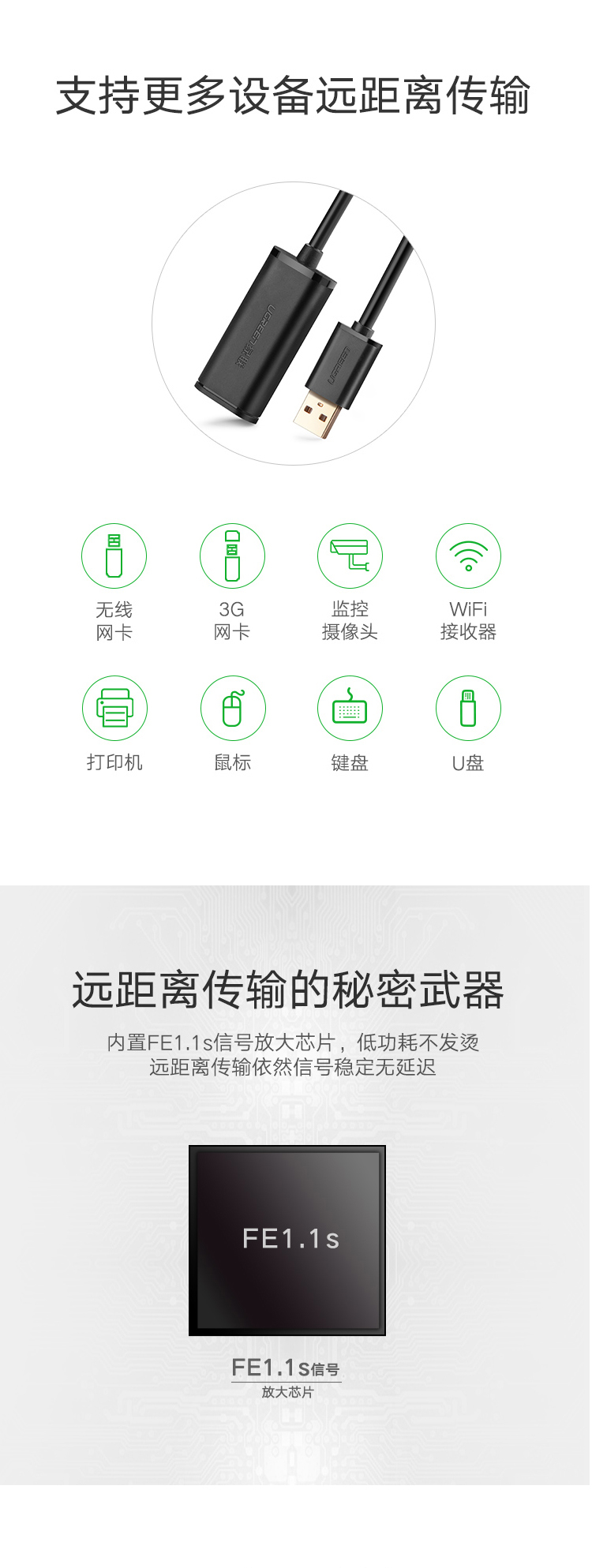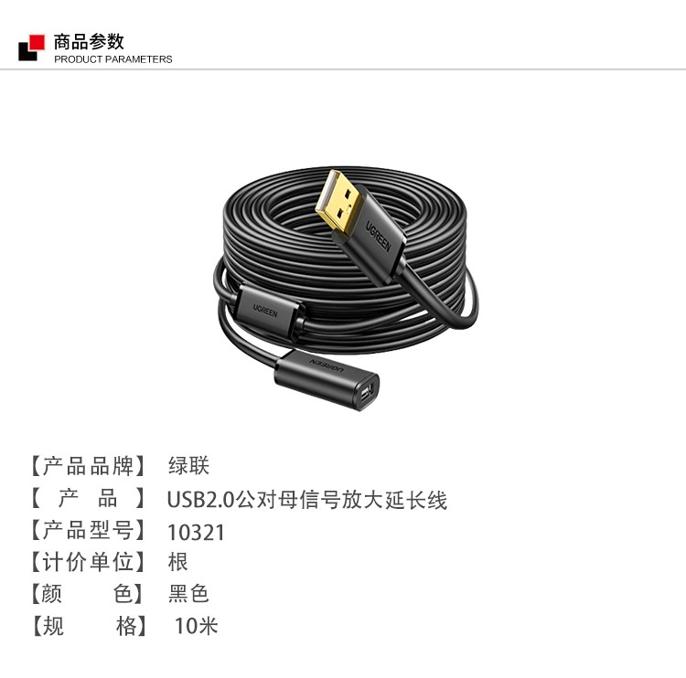 商品名称:绿联(UGREEN) 10321 USB2.0公对母信号放大延长线 10米(计价单位:根)黑色