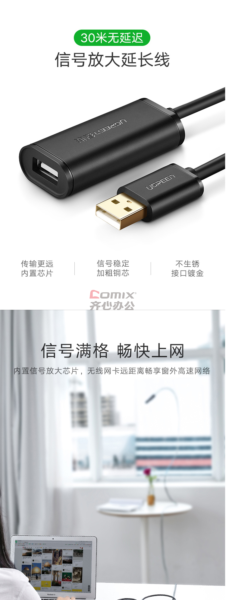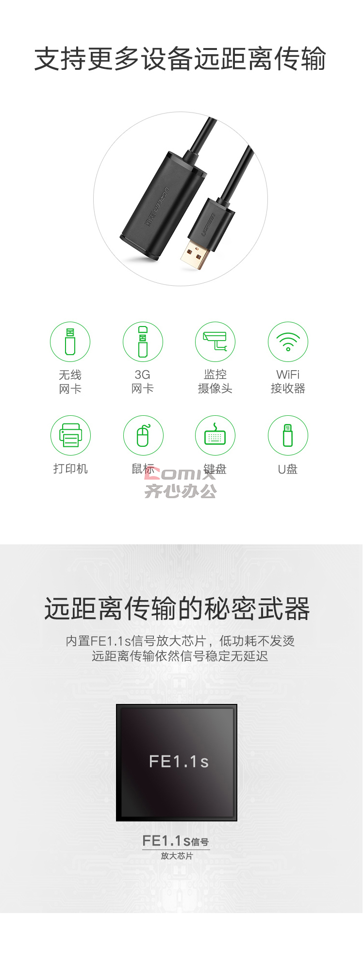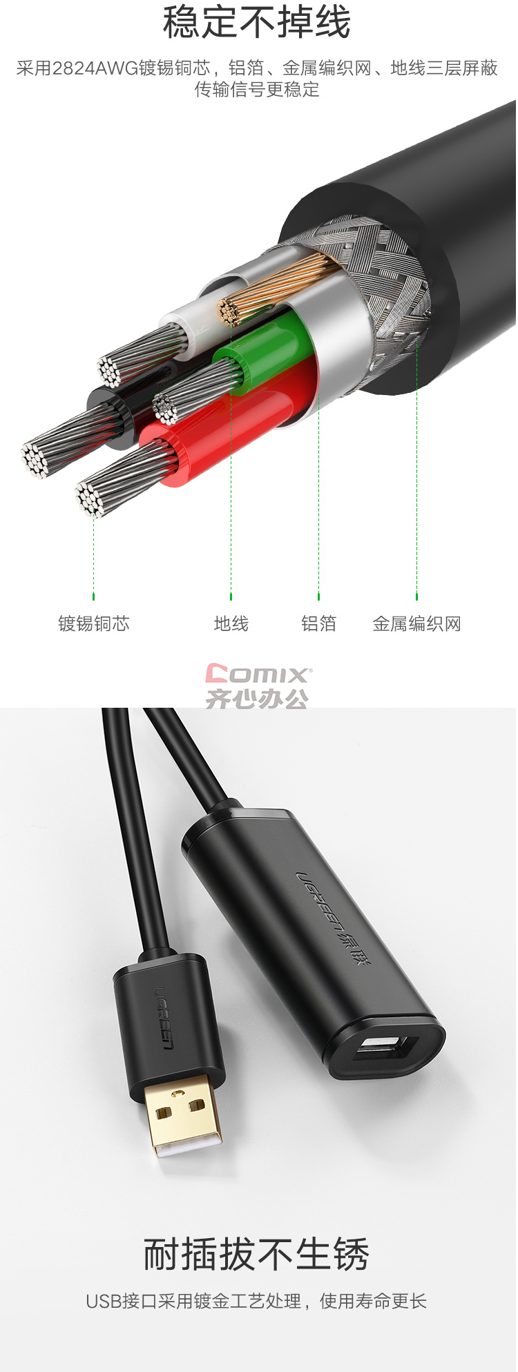 商品名称:绿联(UGREEN) 10321 USB2.0公对母信号放大延长线 10米(计价单位:根)黑色