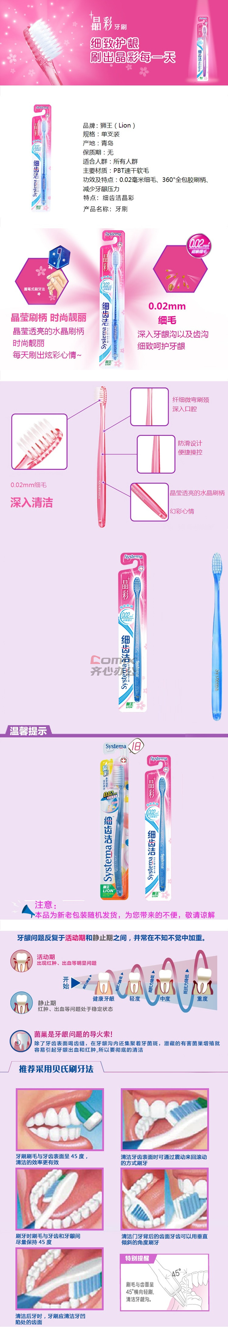 商品名称:狮王(Lion) 细齿洁晶彩 牙刷 (计价单位:支)