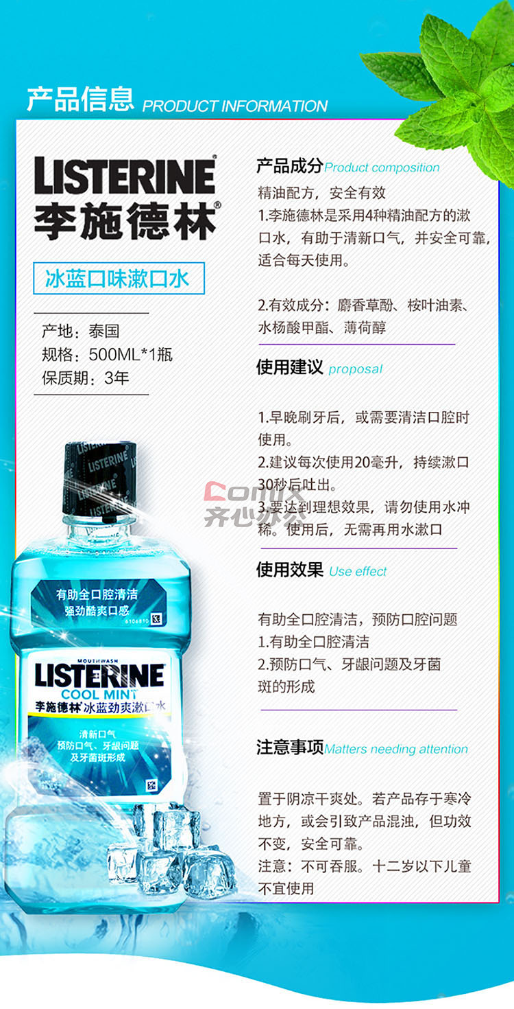 商品名称:李施德林(Listerine) 冰蓝口味 500ml 漱口水 (计价单位:支)