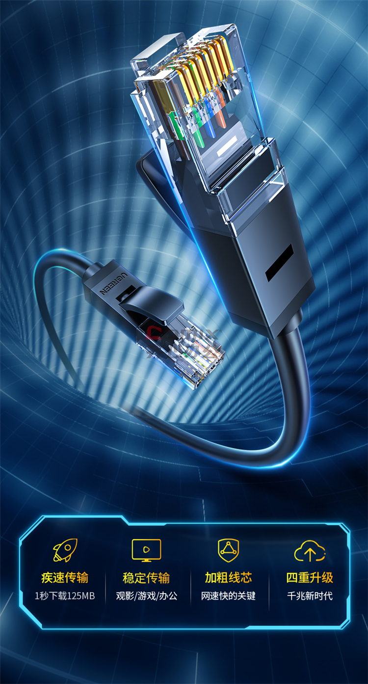 商品名称:绿联 20163 8米 6类八芯双绞千兆网线 (单位:根) 黑色