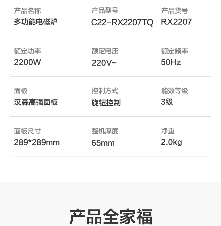 美的(Midea) C22-RX2207TQ 2200W 电磁炉(单位:台)