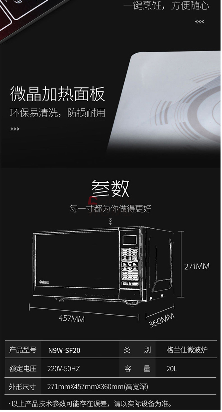 商品名称:格兰仕(Galanz) N9W-SF20 20L 微波炉 白色(单位:个)