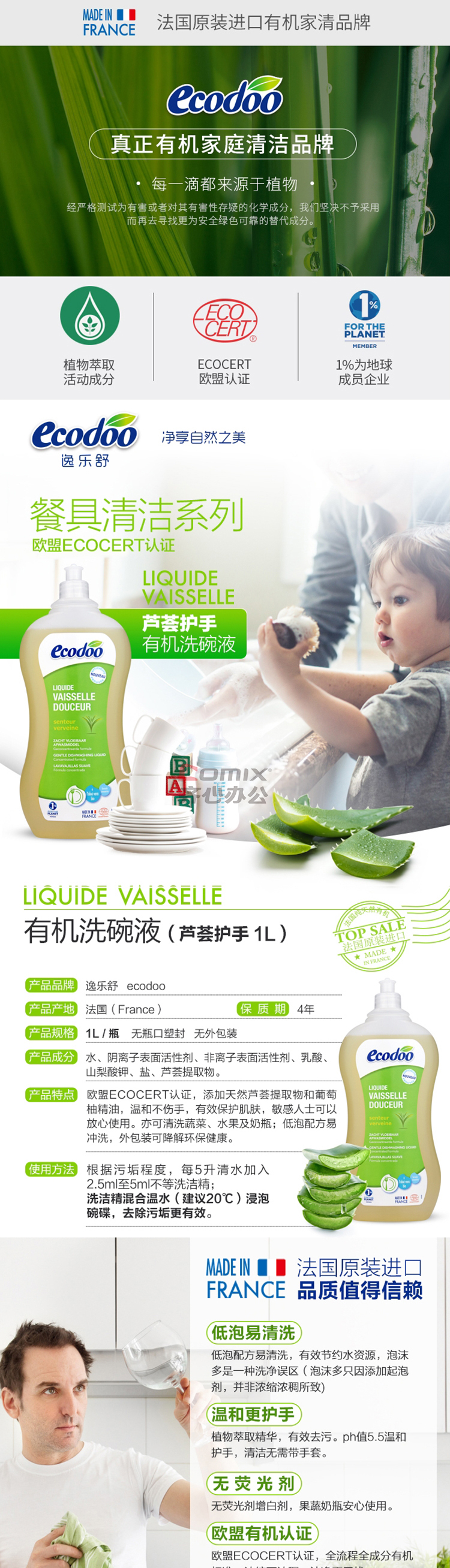 商品名称:逸乐舒 1L 芦荟低泡 超浓缩 温和护手 洗碗液(单位:瓶)
