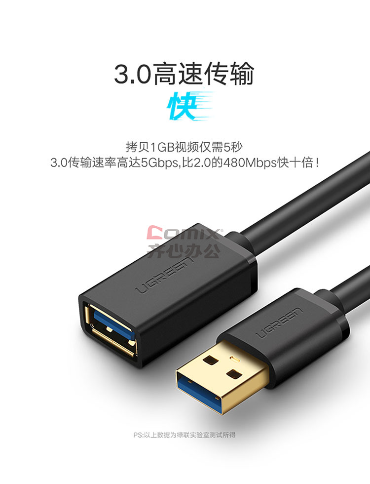 商品名称:绿联 US129 10368 USB3.0 1M数据延长线(单位:根)黑色