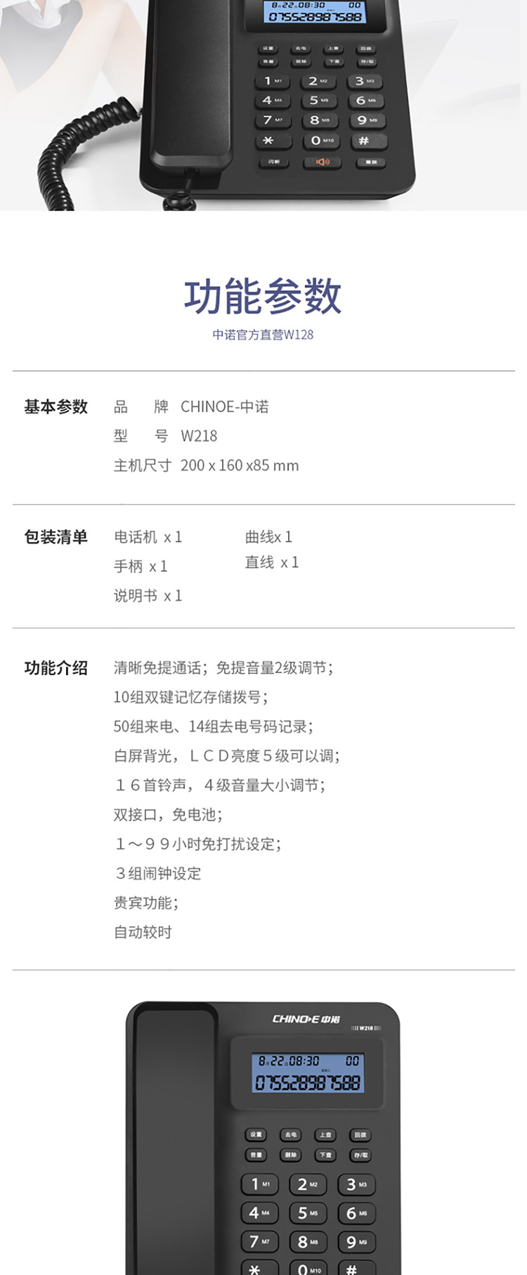 商品名称:中诺 W218 功能办公电话机 黑色 (单位:台)