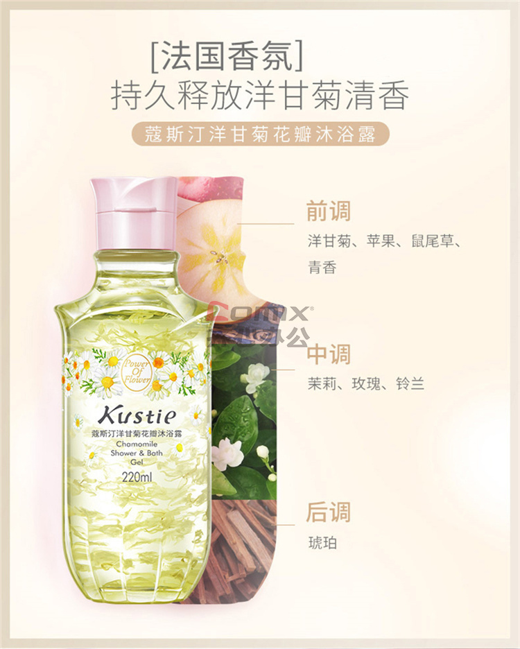 商品名称:蔻斯汀(Kustie) 洋甘菊花瓣 220ml 沐浴露 (计价单位:瓶)