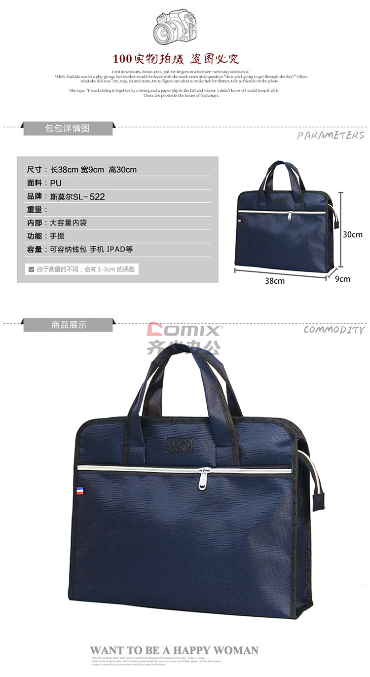 商品名称:斯莫尔 SL-522 大容量商务手提文件包事务包 380*85*300mm 单位:个 黑色