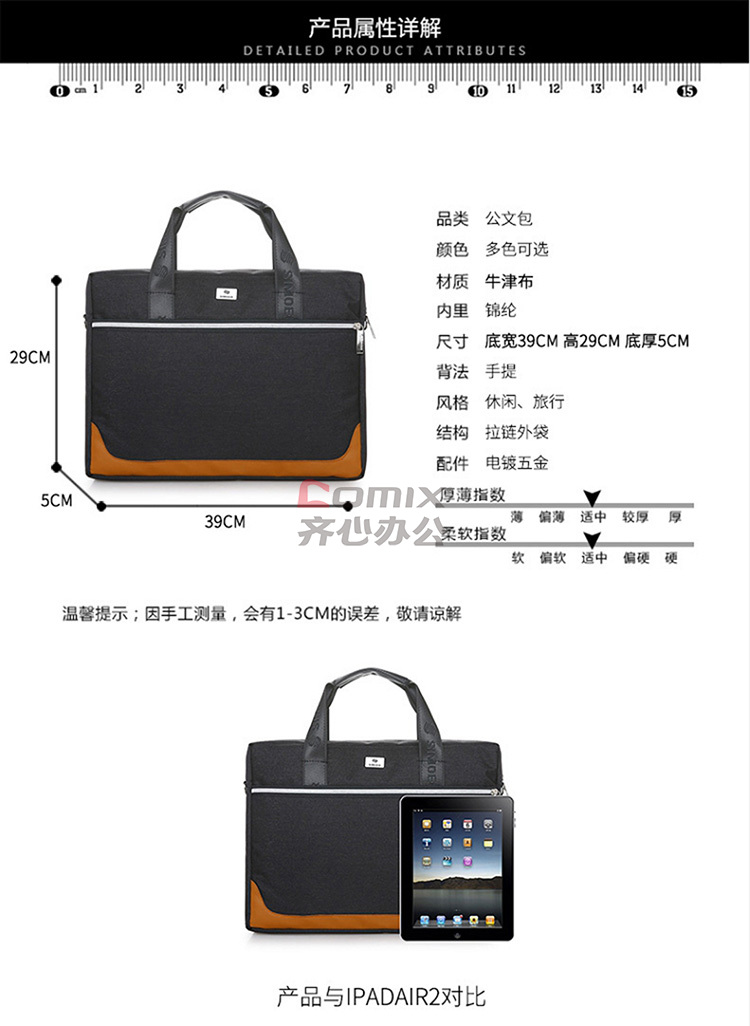 商品名称:斯莫尔 SL-8141 手提文件包事务包 390*55*280mm 单位:个 黑色