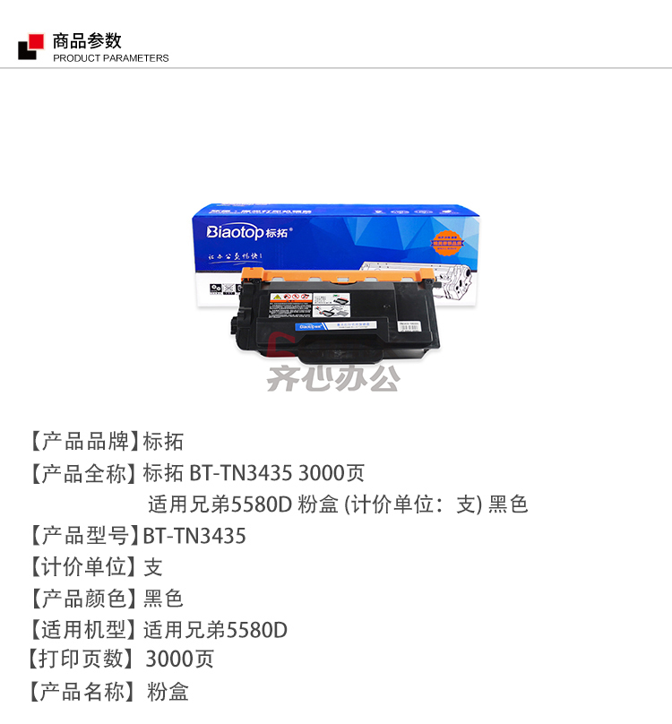 - 商品名称:标拓 BT-TN3435 粉盒 畅蓝系列 3000页 适用兄弟HL-5580D/5585D/5590DN 黑色 单位:支