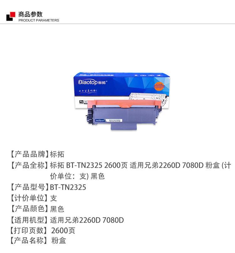 标拓 BT-TN2325 粉盒 畅蓝系列 2600页 适用兄弟HL-2560/2260 黑色 单位:支