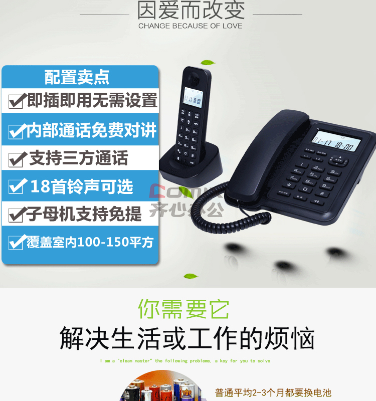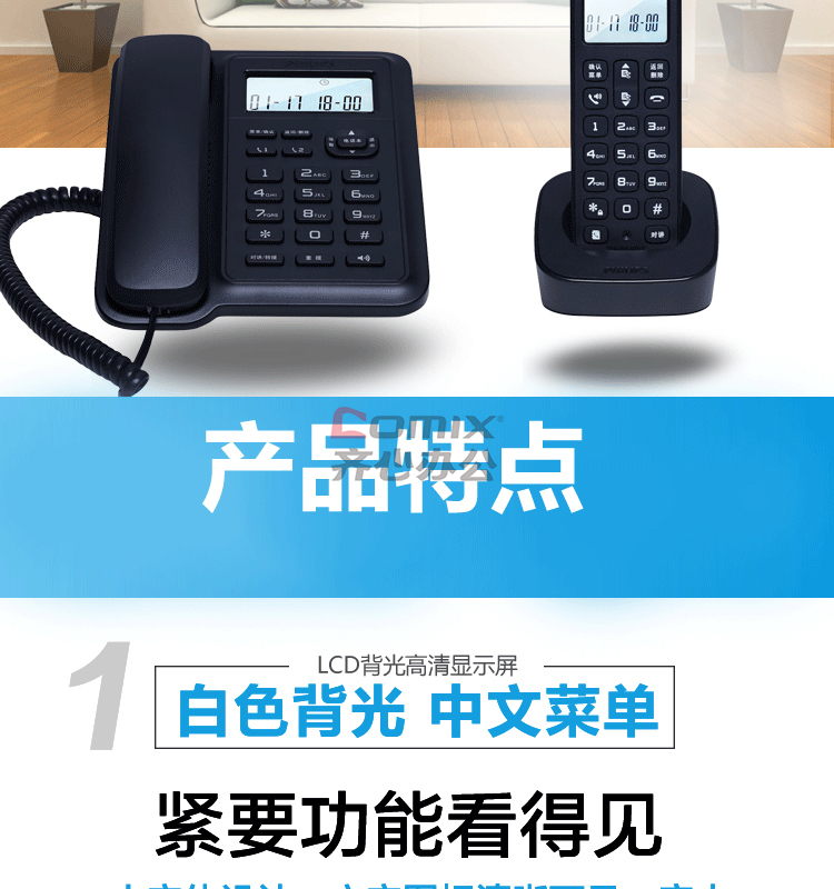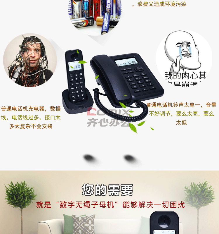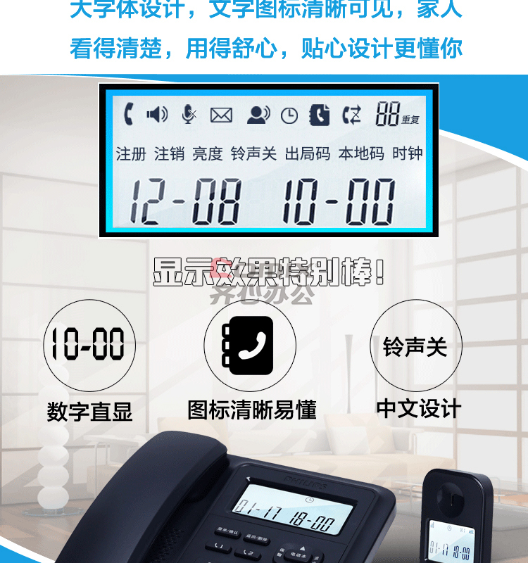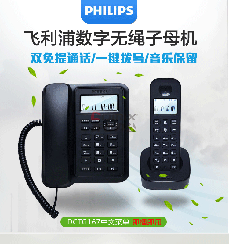 商品名称:飞利浦 DCTG167 246*226*90mm 数字无绳电话机 黑色(单位:台)