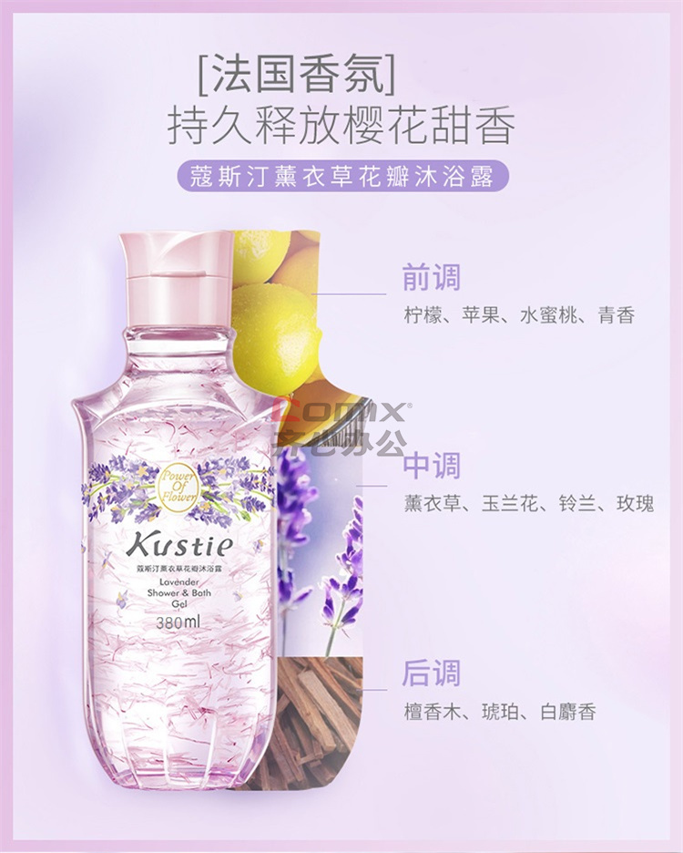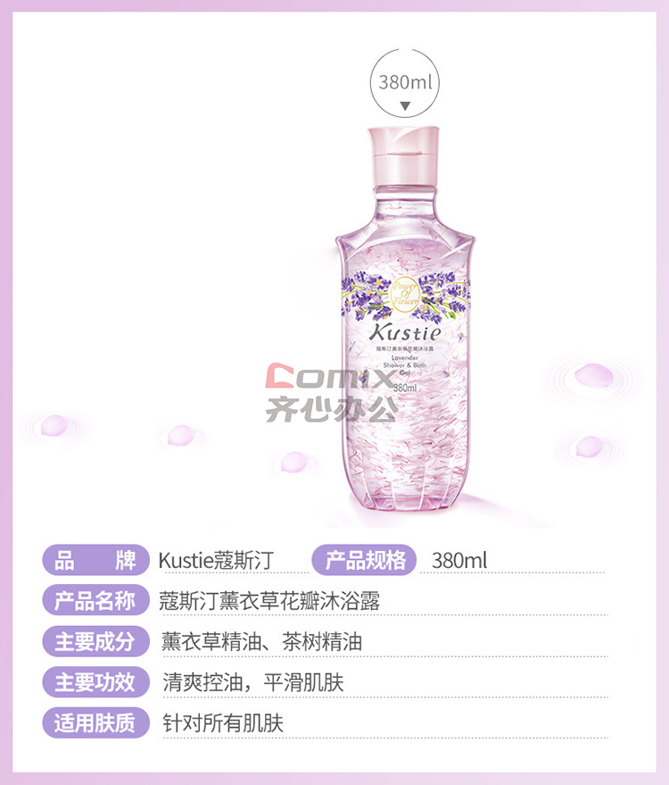 商品名称:蔻斯汀(Kustie) 薰衣草花瓣 380ml 沐浴露 (计价单位:瓶)