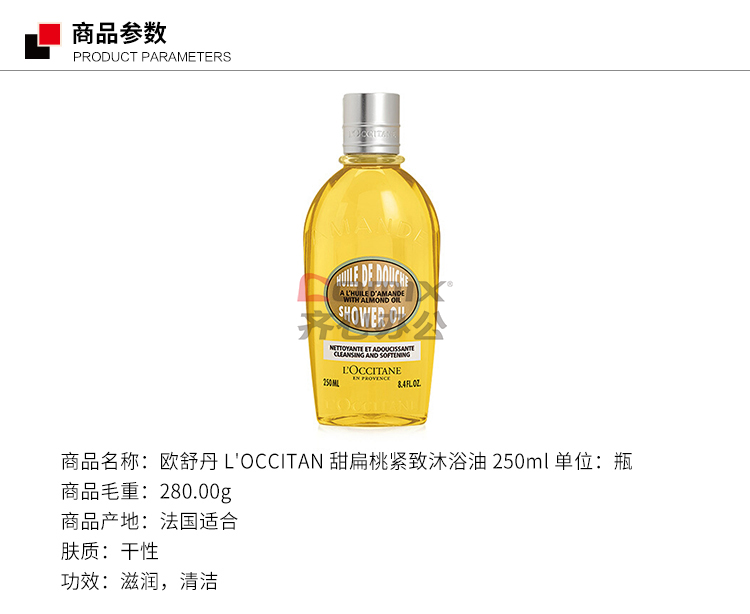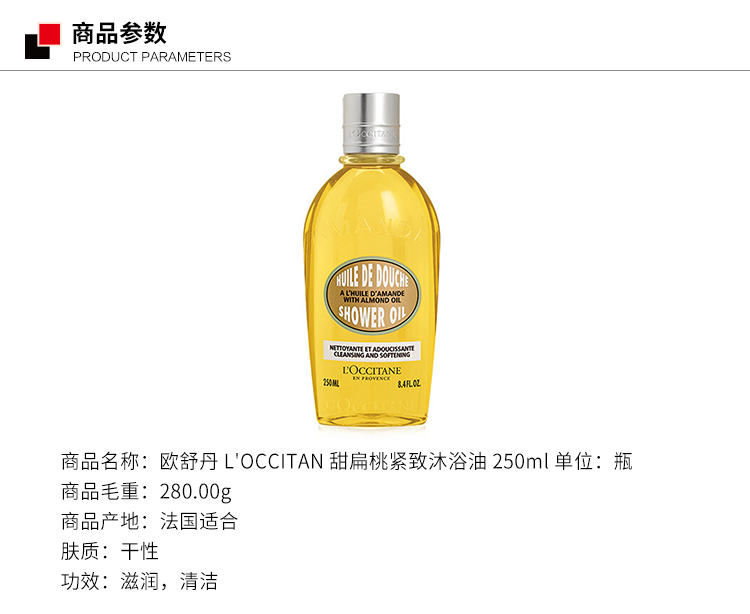商品名称:欧舒丹 L'OCCITANE甜扁桃紧致沐浴油 250ml 单位:瓶