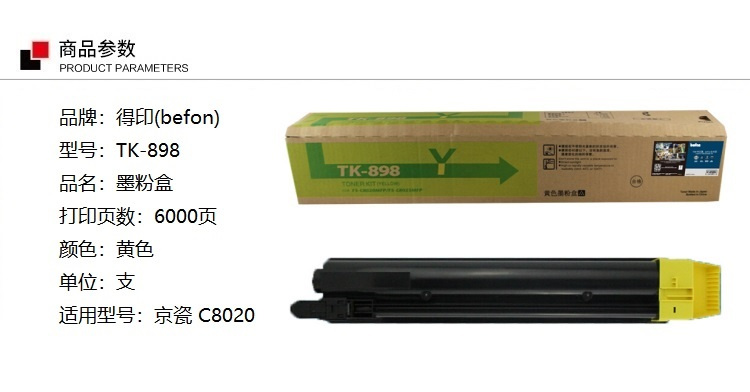 商品名称:得印(befon) TK-898墨粉盒 碳粉(计价单位:只)黄色