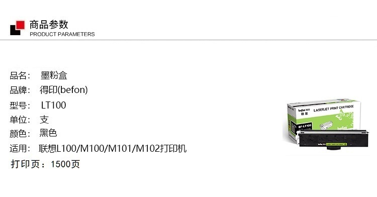 商品名称:得印(befon) LT100墨粉盒 碳粉(计价单位:只)黑色