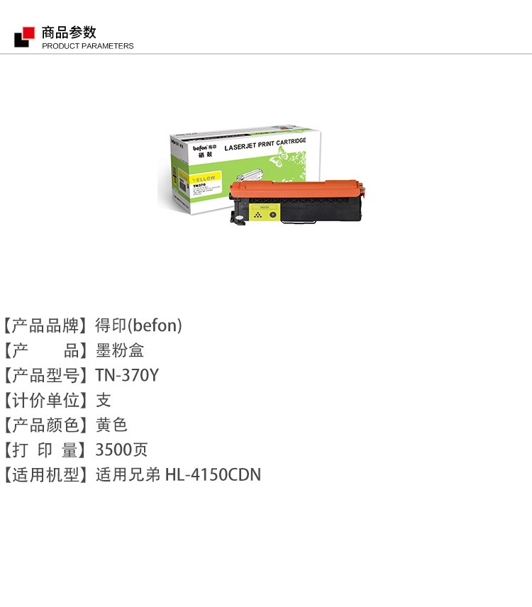 商品名称:得印(befon) TN-370Y墨粉盒 碳粉(计价单位:只)黄色