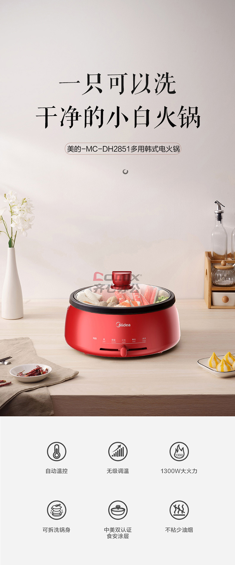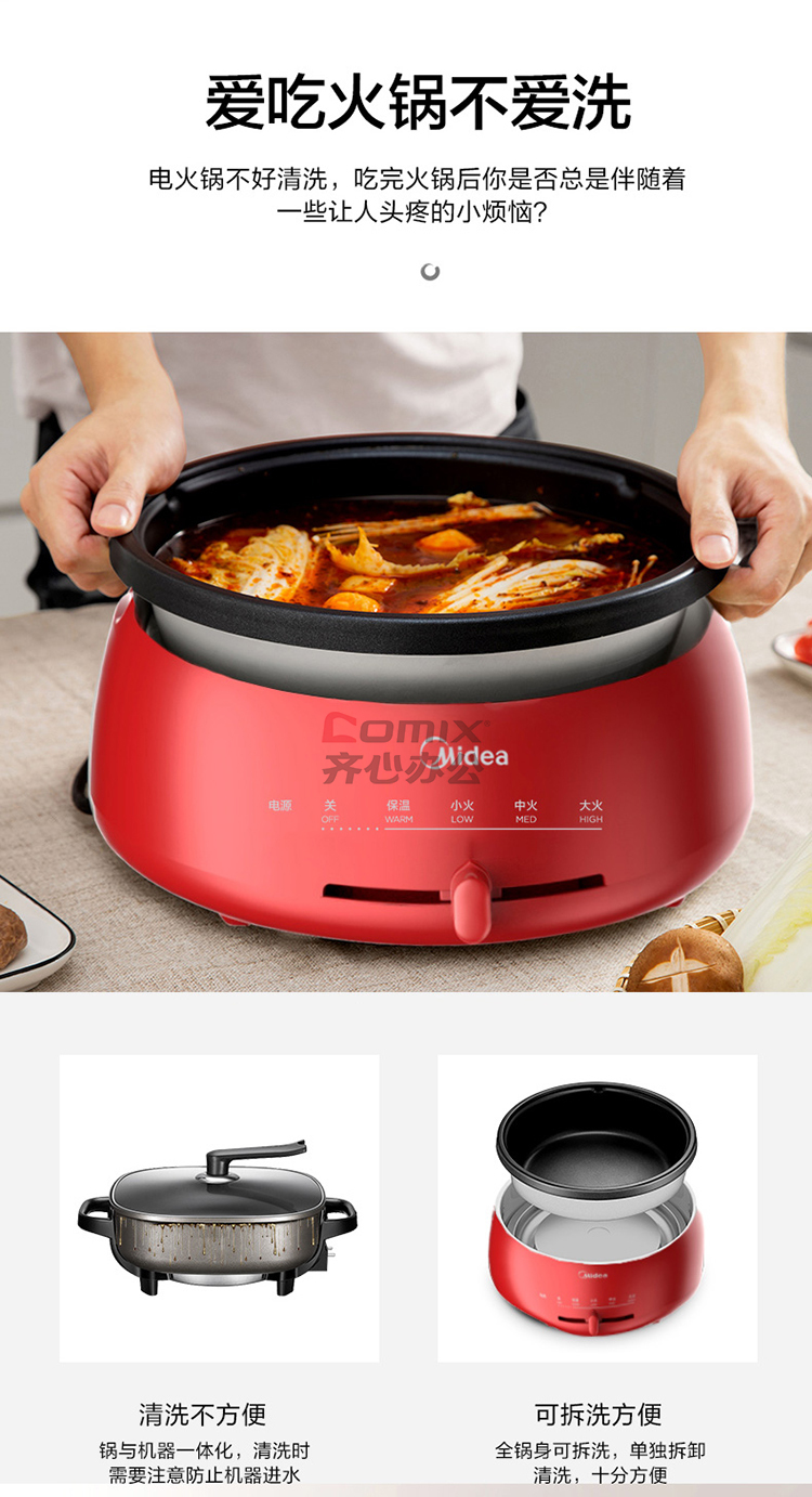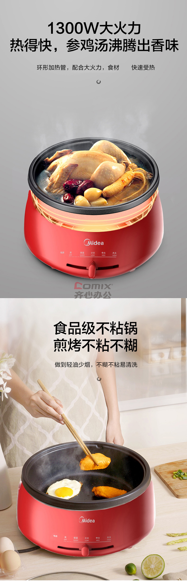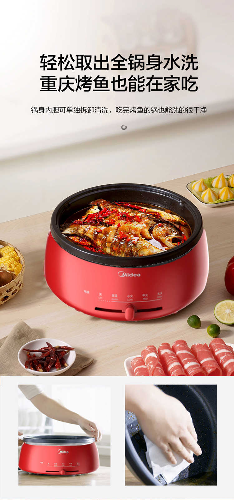 美的 MC-DH2851 分体式家用多功能电热锅 红色(单位:台)