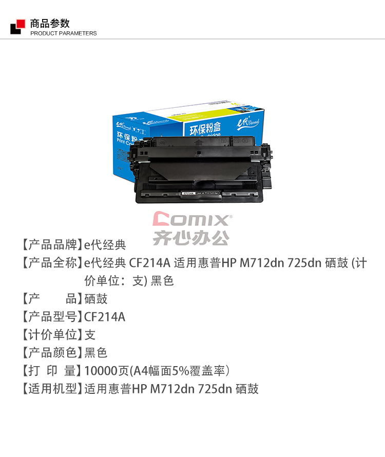 商品名称:e代经典 CF214A 14A 硒鼓 适用惠普HP M712dn 725dn打印机 硒鼓 单位:个