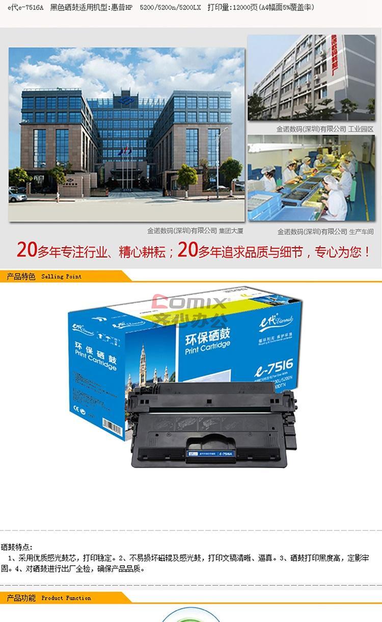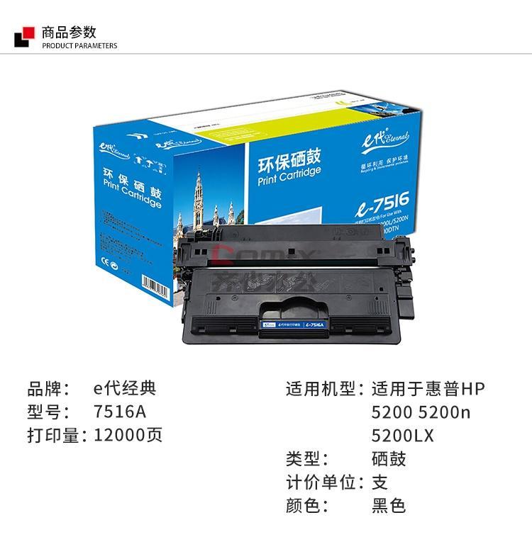 - 商品名称:e代经典 7516A/CRG309 硒鼓 适用于惠普HP 5200 5200n 5200LX 佳能canon LBP3500 3900 3950 打印机 单位:个