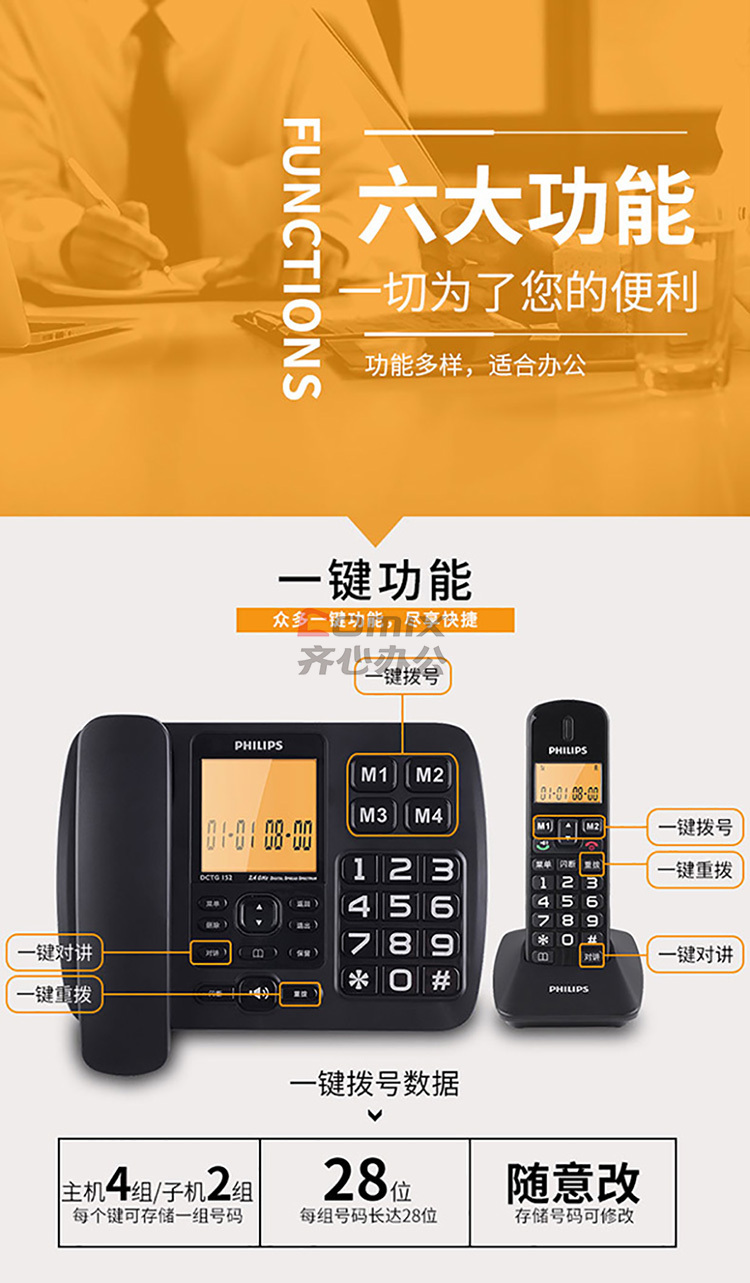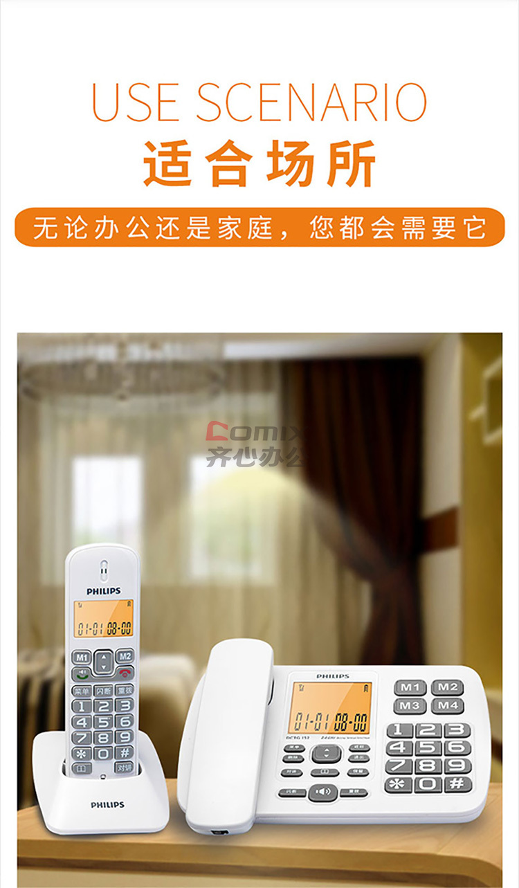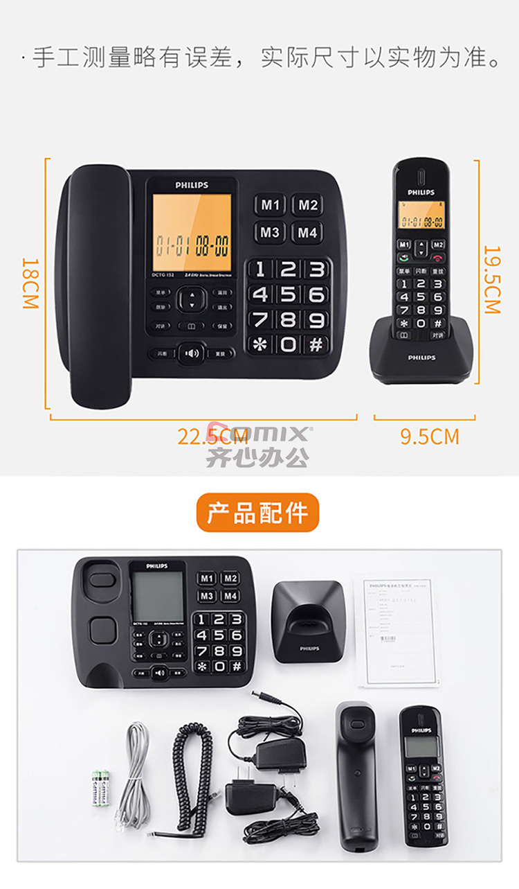 商品名称:飞利浦 DCTG152 一拖三 无绳电话机 黑色 (单位:套)