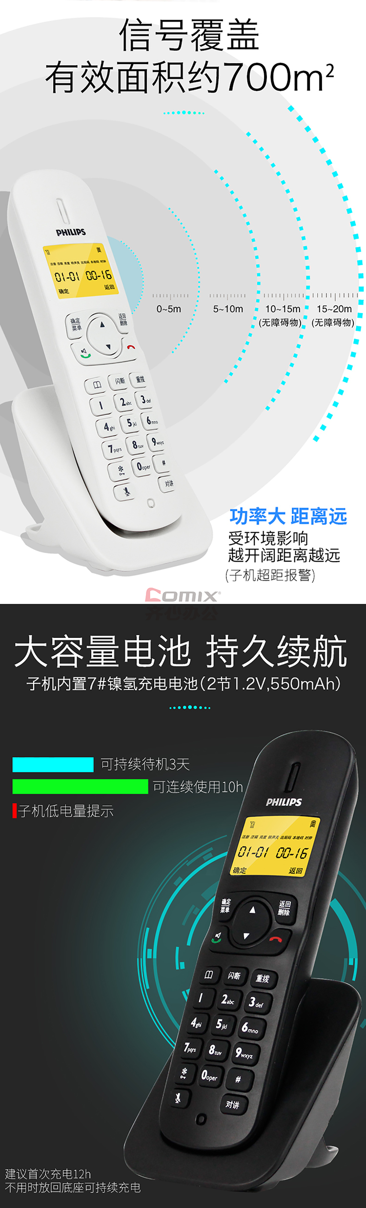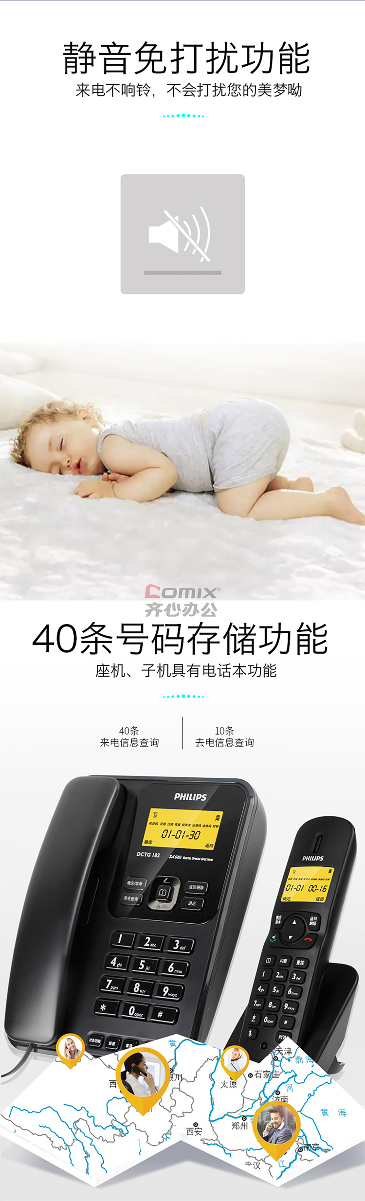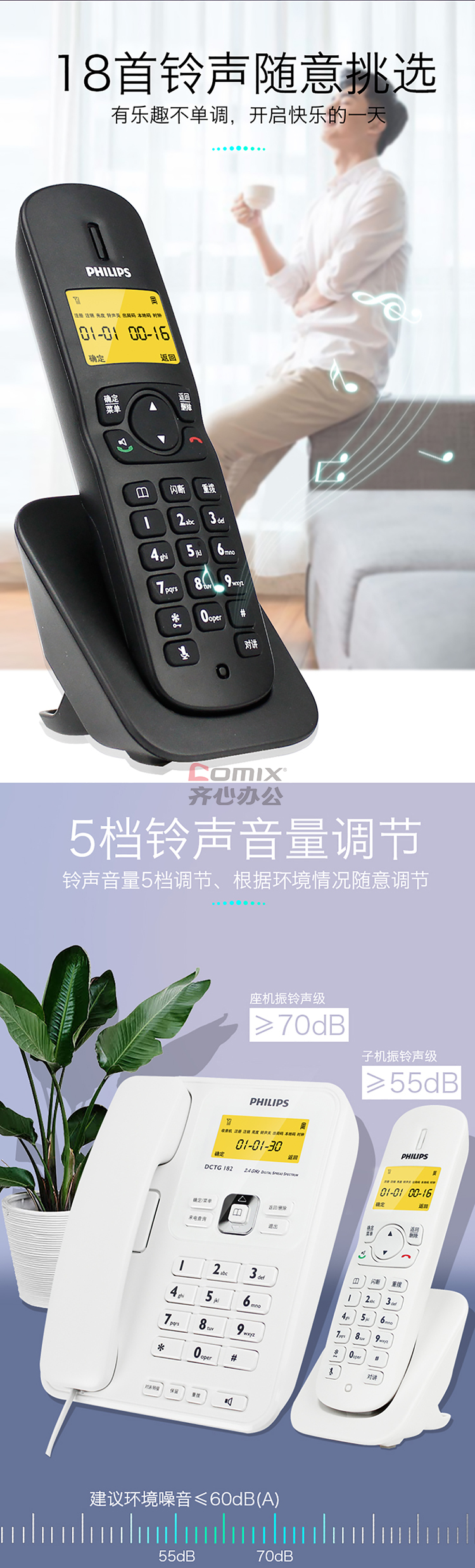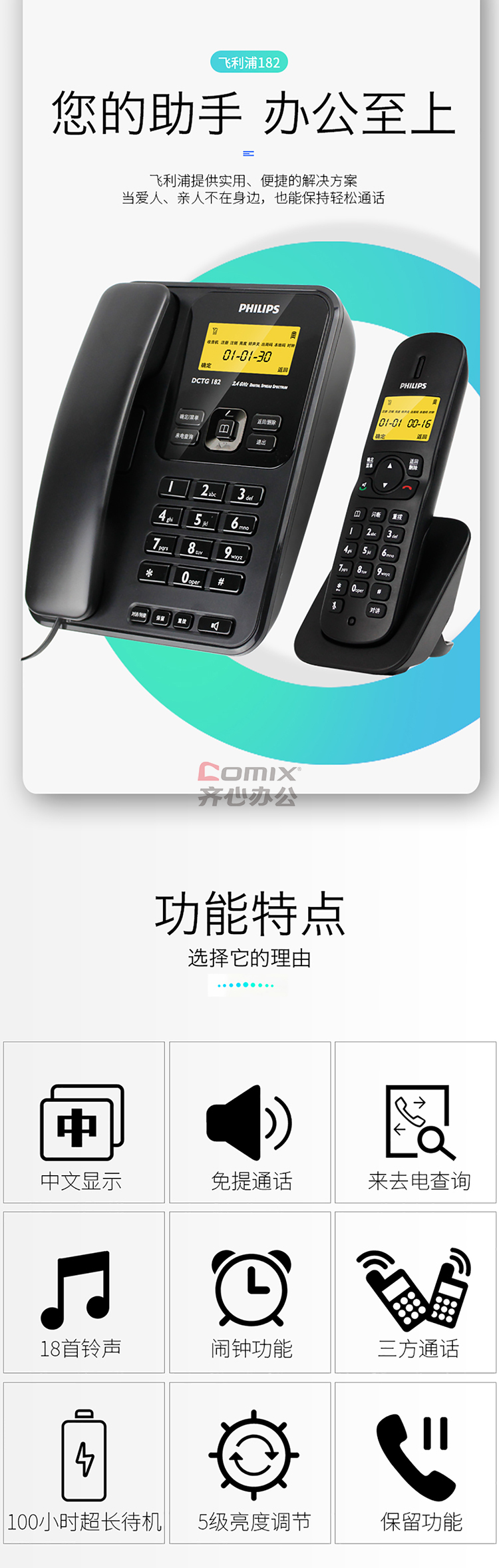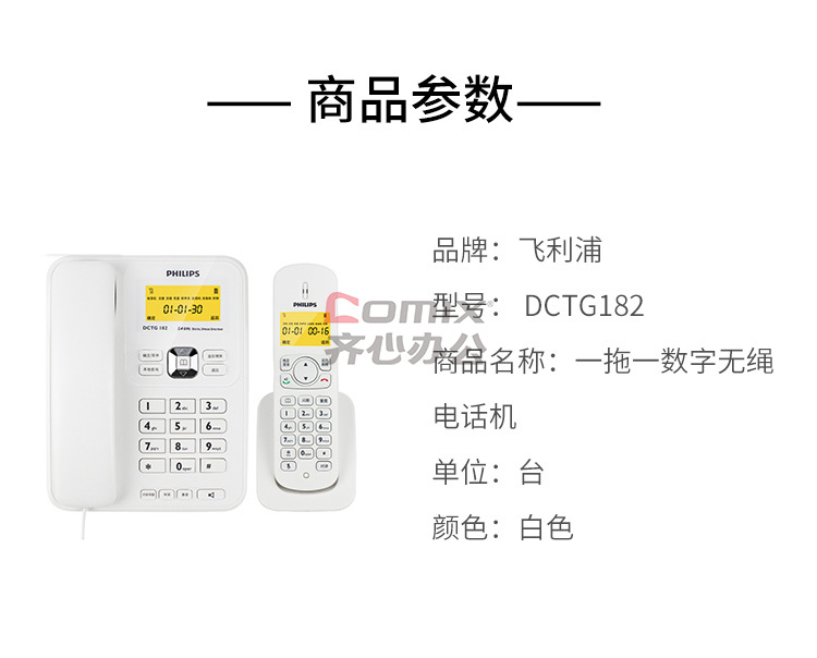 商品名称:飞利浦 DCTG182 一拖一数字无绳电话机 白色(单位:台)