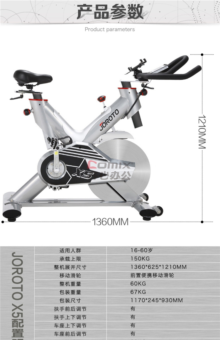 商品名称:捷瑞特 X5 动感单车 银色 (单位:台)