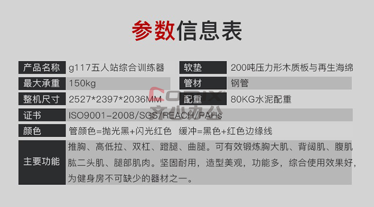 商品名称:捷瑞特 G117 五人站综合训练器 黑色 (单位:台)