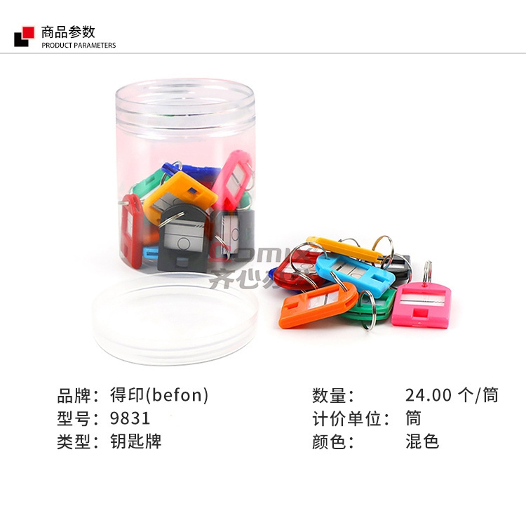 商品名称:得印 9831 钥匙牌 42*28mm 24个/筒 彩色 单位:筒