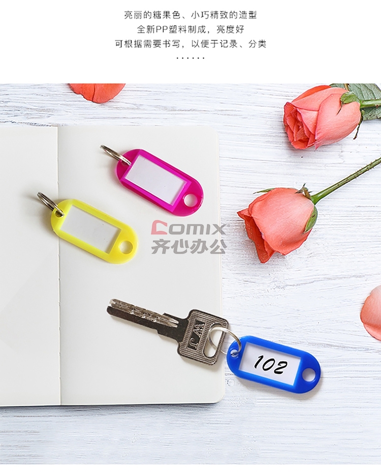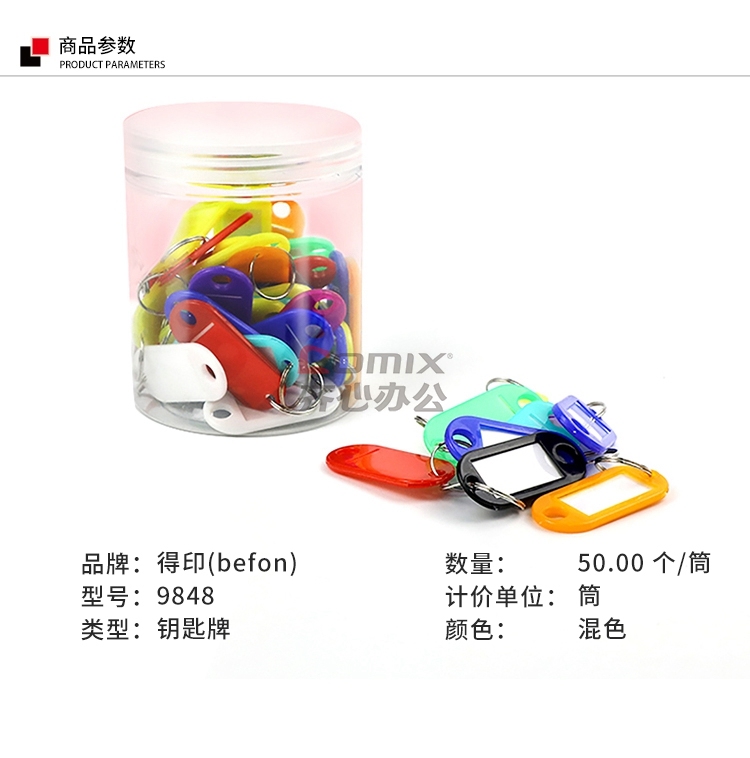 商品名称:得印 9848 钥匙牌 50*22mm 50个/筒 彩色 单位:筒