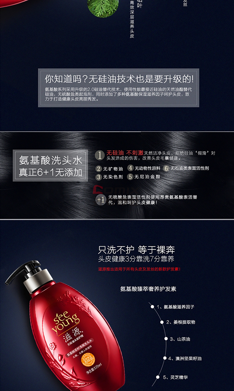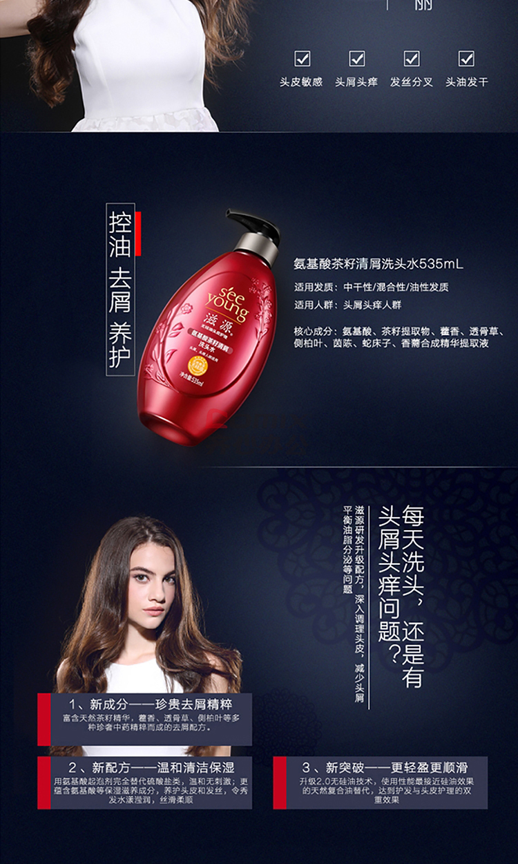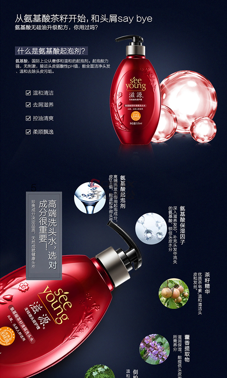 商品名称:滋源 氨基酸茶籽清屑洗头水 535ml 单位:瓶
